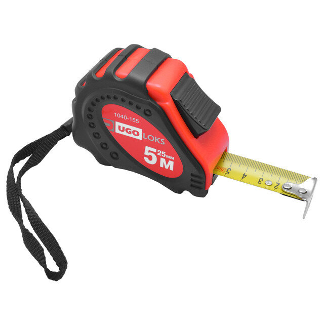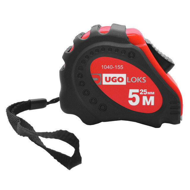 Рулетка UGO LOKS 5 м, ширина ленты 25 мм, с автостопом, облегчённая информация: