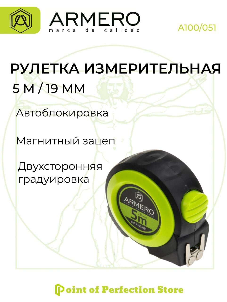 Рулетка с автоблокировкой 5м х 19мм ARMERO А100/051 информация: