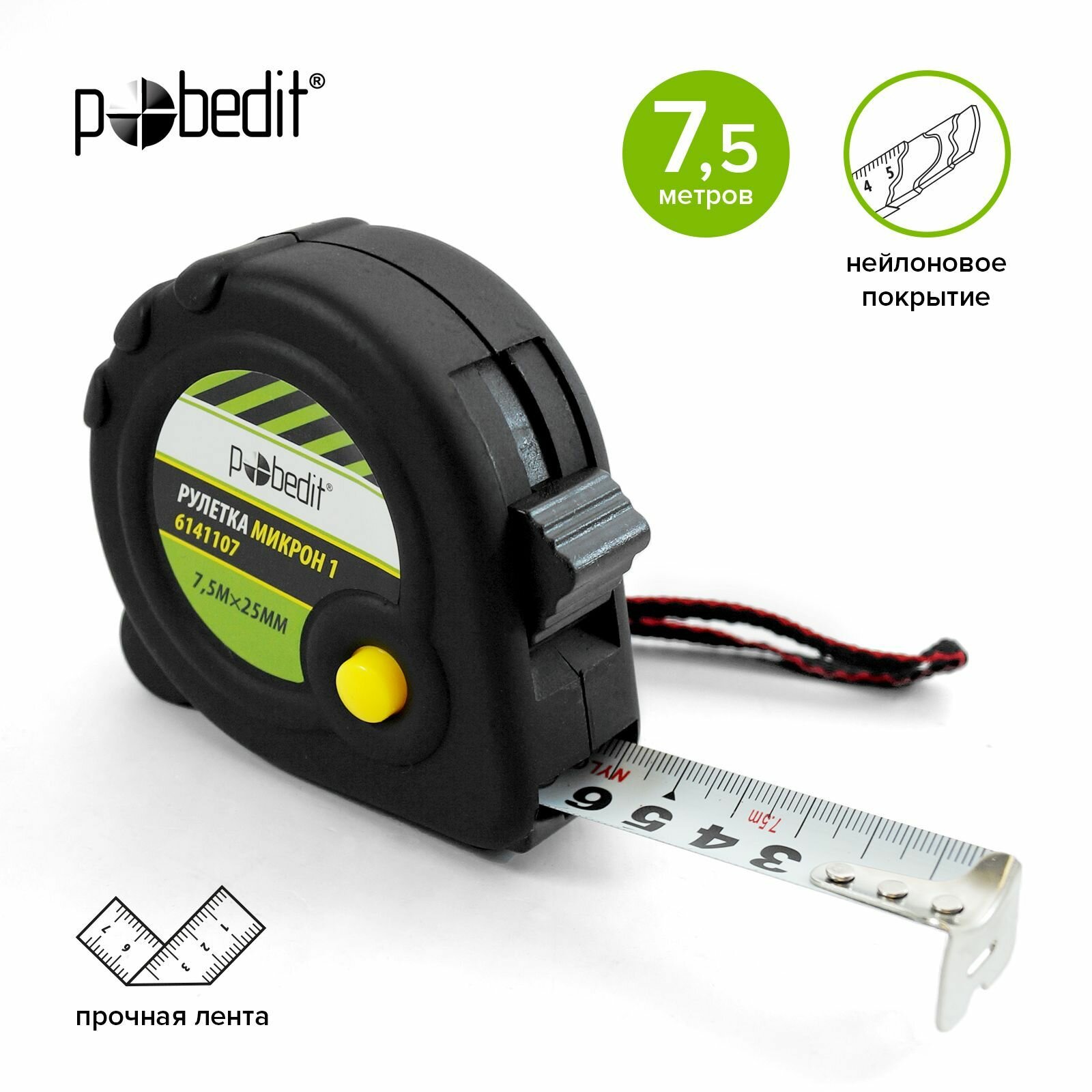 Рулетка строительная 7,5м х 25мм, матовый корпус Pobedit информация:
