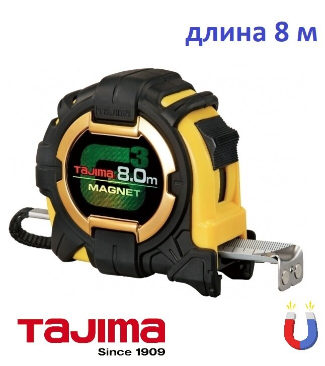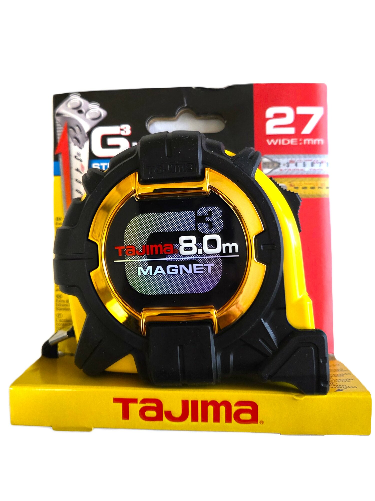 10 цен на Рулетка TAJIMA G3 LOCK27 8м/27мм (G3M780MT) с магнитным зацепом, обрезиненный корпус, 2-х сторонняя шкала