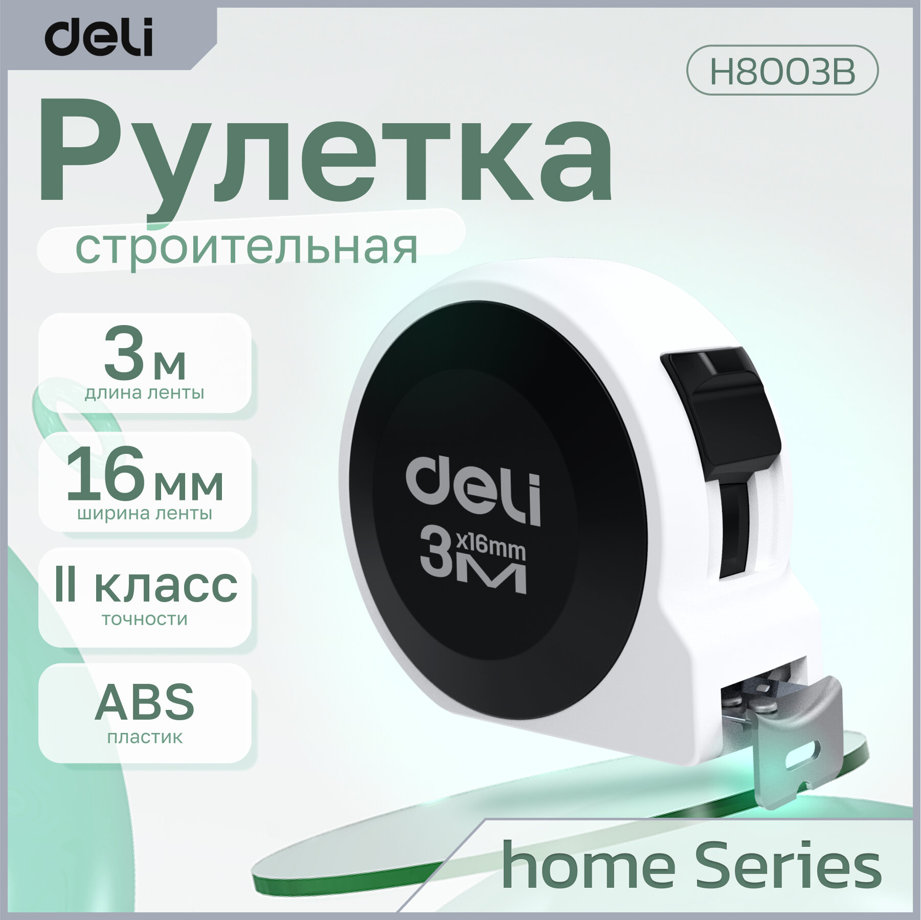 10 цен на Рулетка "Home Series White" Deli H8003B 3м х 16мм (Эксклюзивный дизайн, софттач пластик, подарочная упаковка)