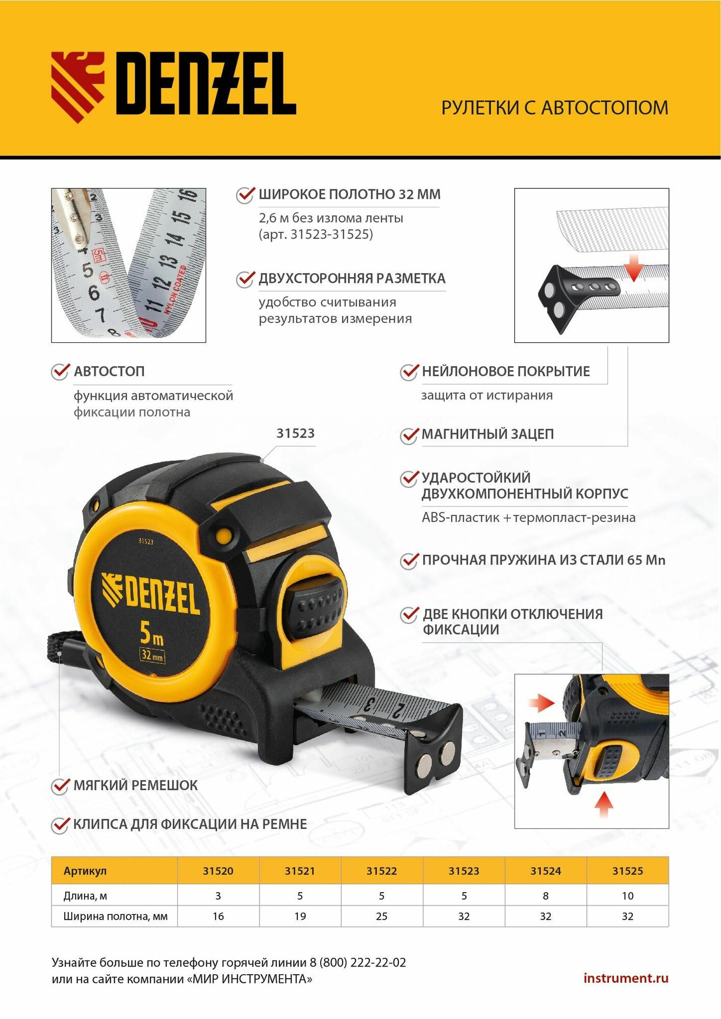 Характиристики этого товара не найдены!Отзывы на Рулетка 5 м х 25 мм, автоматическая фиксация, магнитный зацеп, двухсторонняя разметка