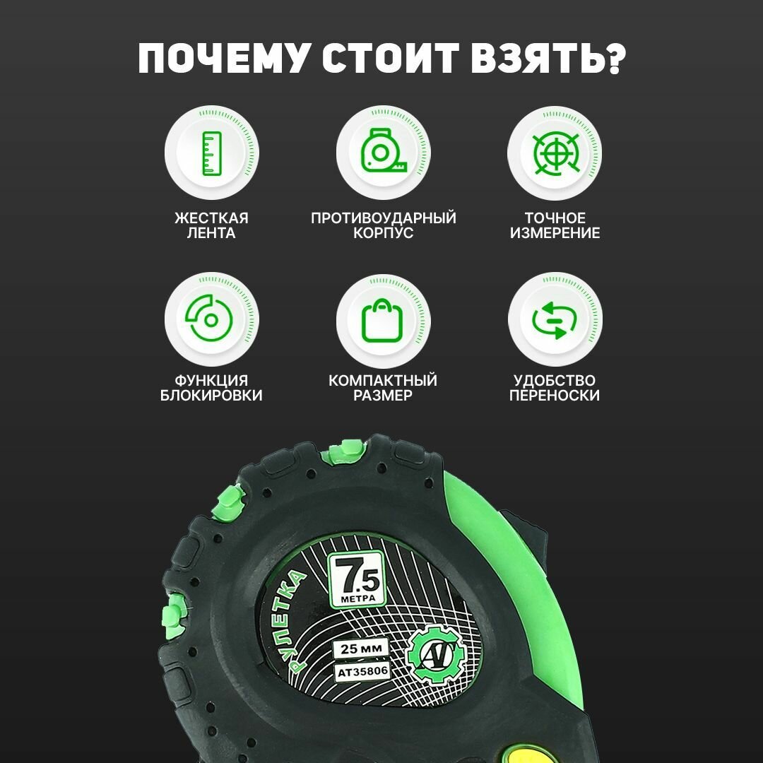 0 отзывов, средняя оценка 0. Чтобы купить «Рулетка измерительная 7,5 м х 25 мм строительная с 3 фиксаторами» по лучшей цене мы сканируем авито, алиэкспресс, маркет, озон, савеловский, плеер, горбушку, беру, официальные сайты и находим минимальную. Администрация не несет ответсвенность актуальность цен на Рулетка измерительная 7,5 м х 25 мм строительная с 3 фиксаторами, более подробно узнавайте на сайте магазина.