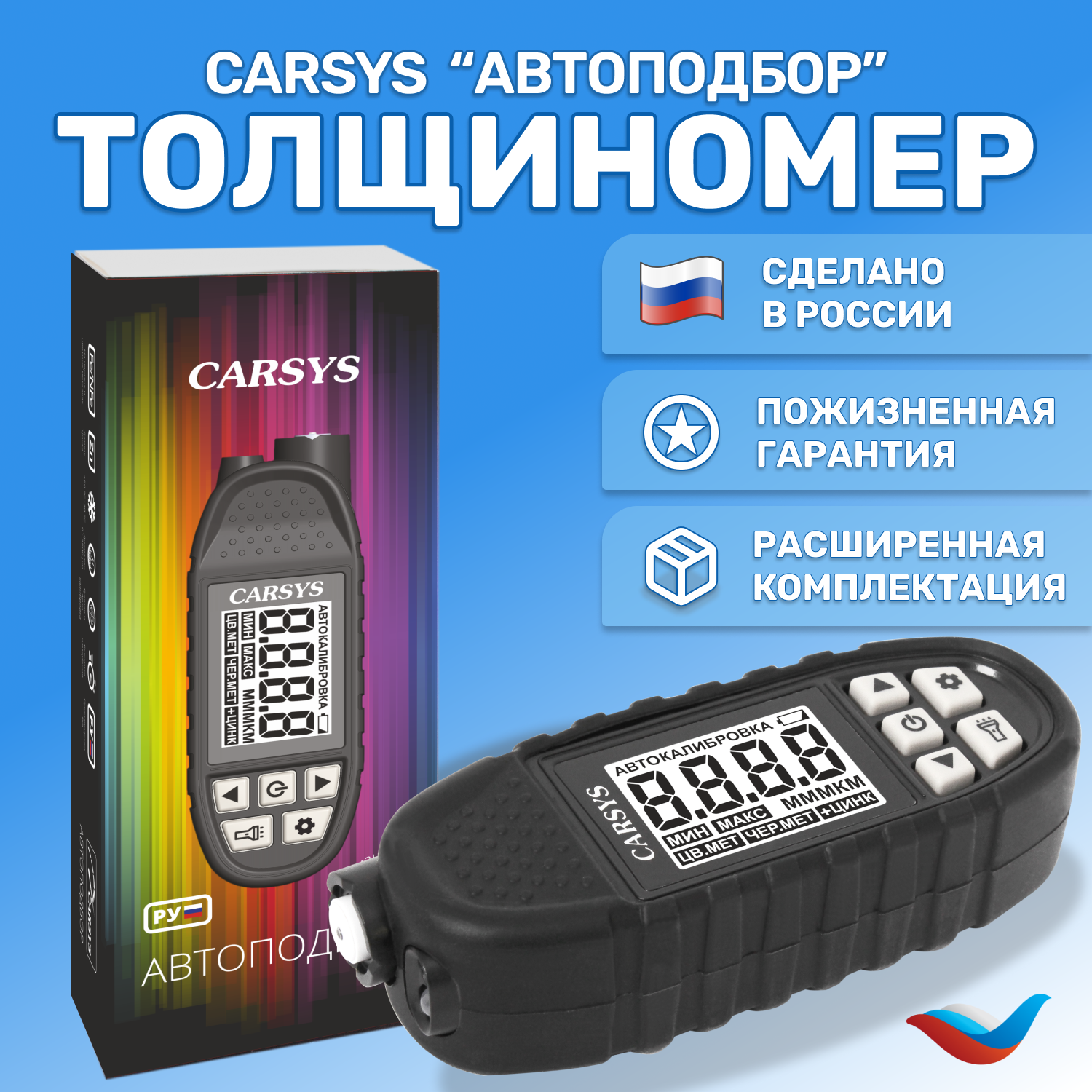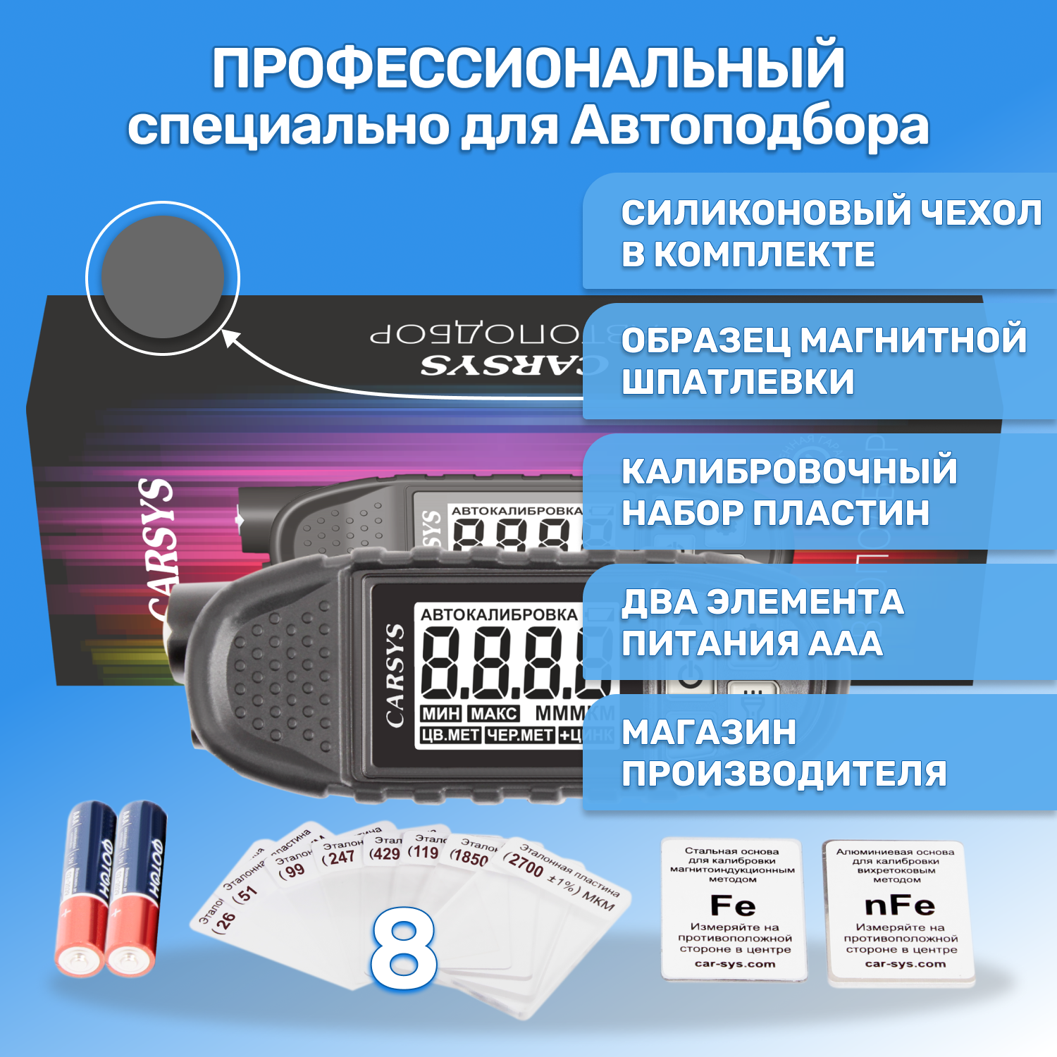 10 цен на Толщиномер автомобильный CARSYS АВТОПОДБОР с силиконовым чехлом и образцом магнитной шпаклевки, 0-3500мкм