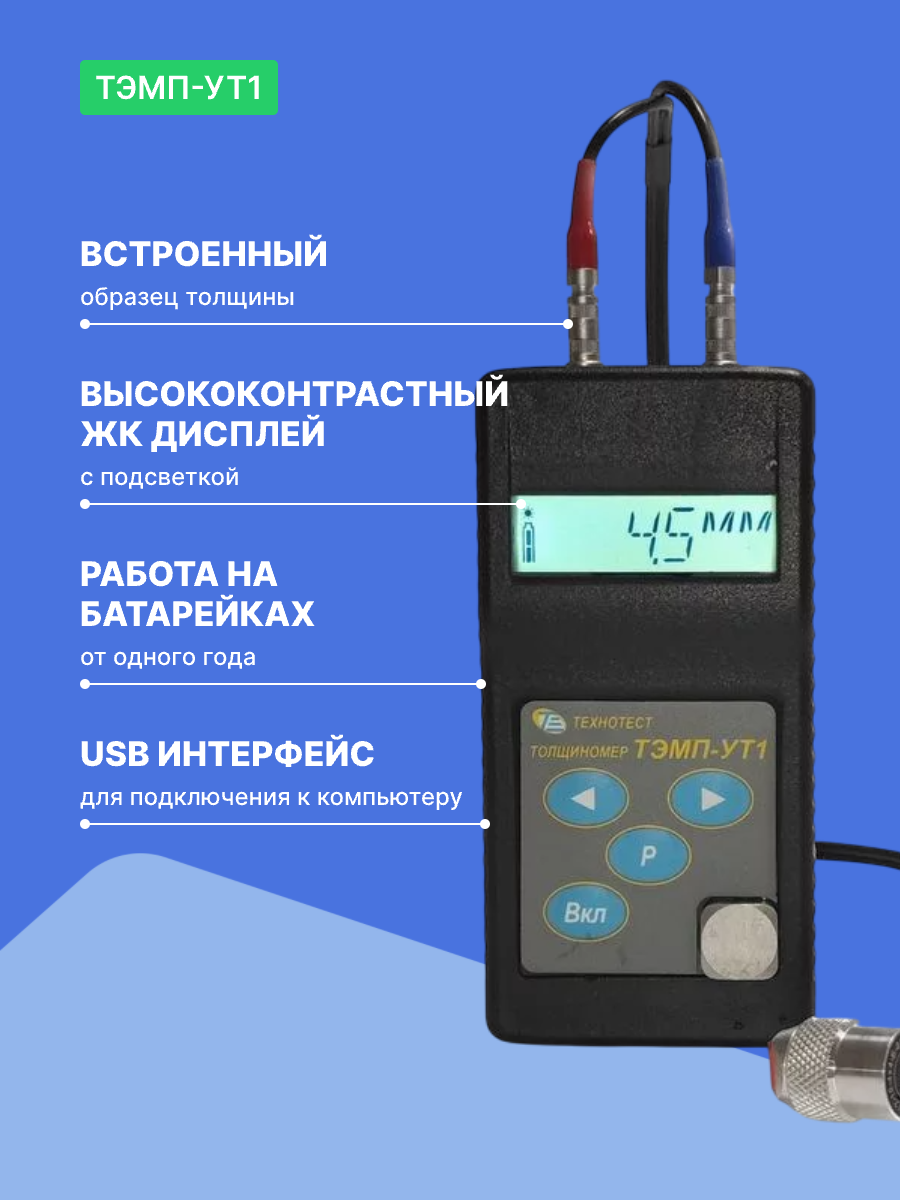 10 цен на ТЭМП-УТ1 Толщиномер ультразвуковой (пластик. корпус) c одним преобразователем