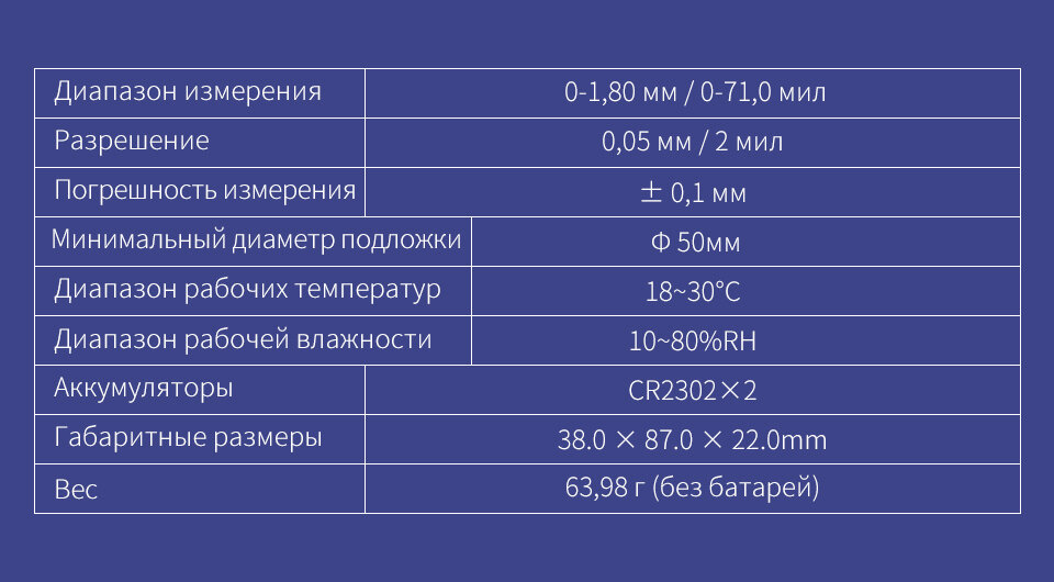 Толщиномер VDIAGTOOL с подсветкой информация: