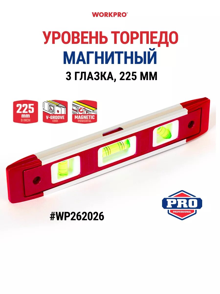 10 цен на Уровень торпедо магнитный, 225 мм, WP262026, WORKPRO #WP262026, цвет красный