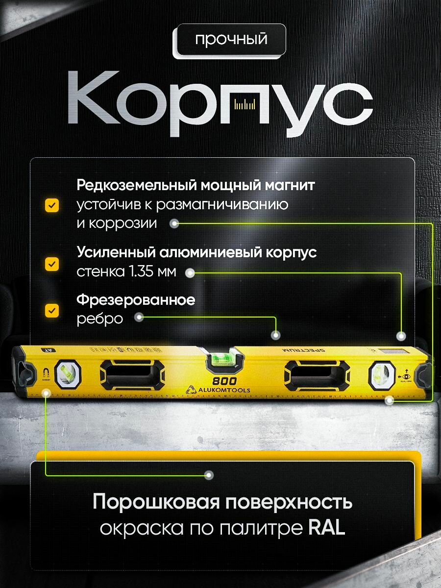 Уровень строительный магнитный усиленный пузырьковый, 800 мм, 3 индикатора, фрезерованный, зеркальный глазок информация: