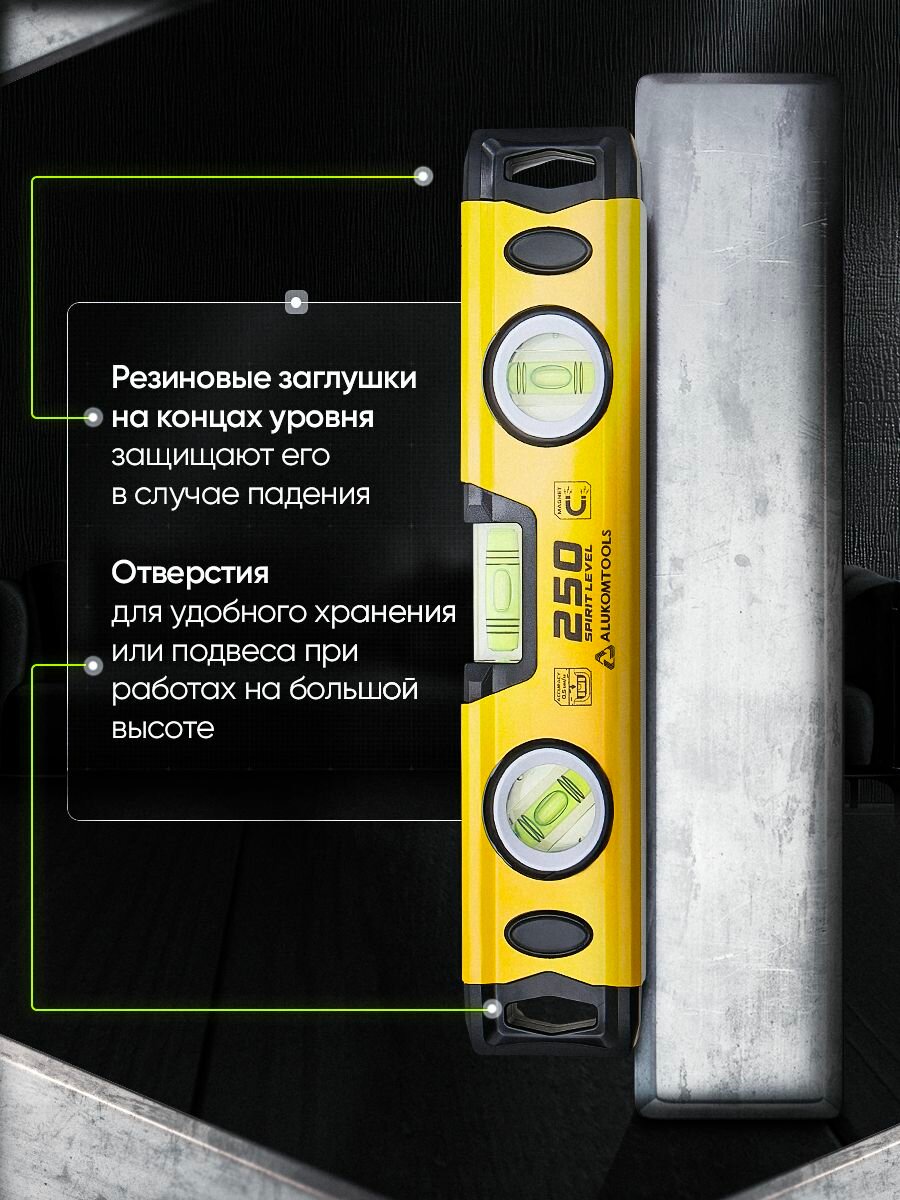 Уровень строительный магнитный усиленный пузырьковый, 250 мм, 3 индикатора, фрезерованный, зеркальный глазок, "Торпедо" информация: