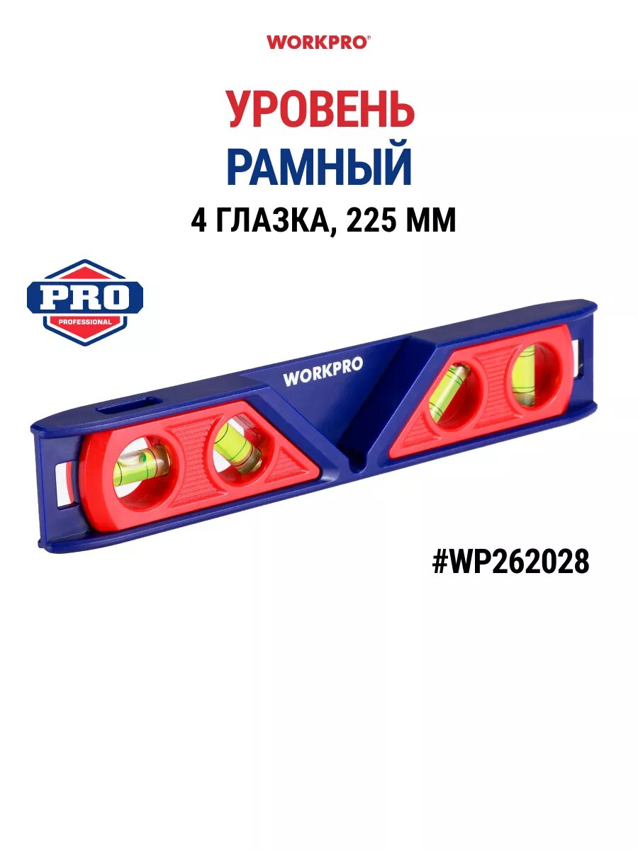 Уровень рамный магнитный, 225 мм, WP262028, WORKPRO #WP262028, цвет сине-красный информация: