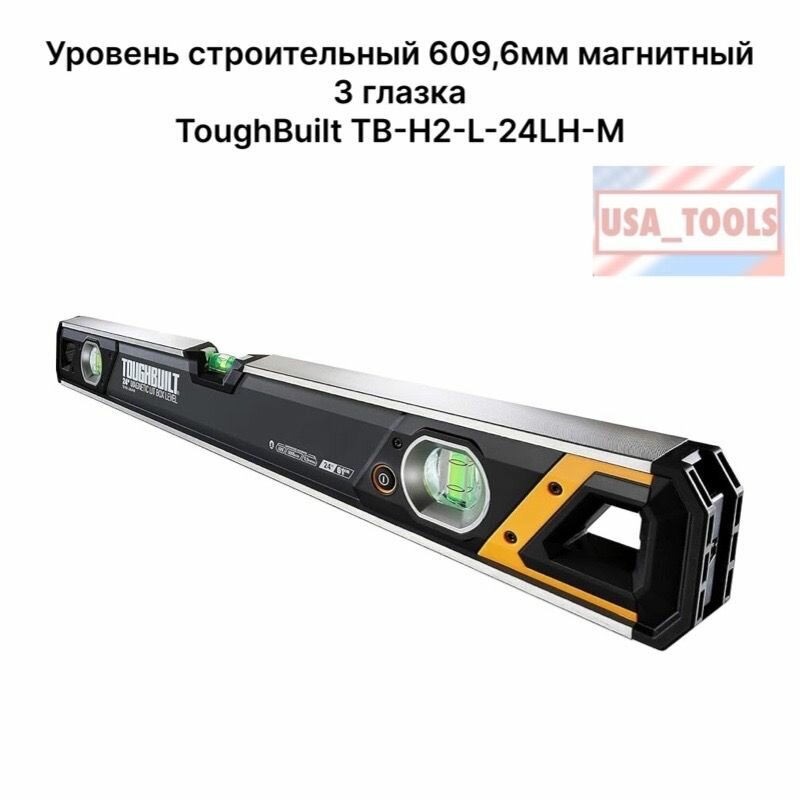 Уровень строительный 609,6мм магнитный 3 глазка ToughBuilt TB-H2-L-24LH-M информация: