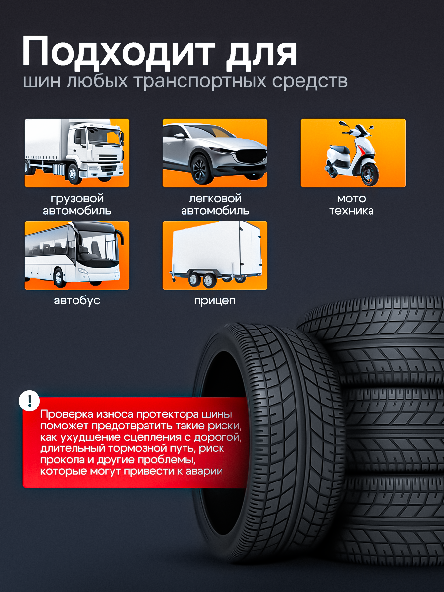 Глубиномер/Цифровой измеритель глубины протектора шин автомобиля, толщиномер измерения износа шин. информация: