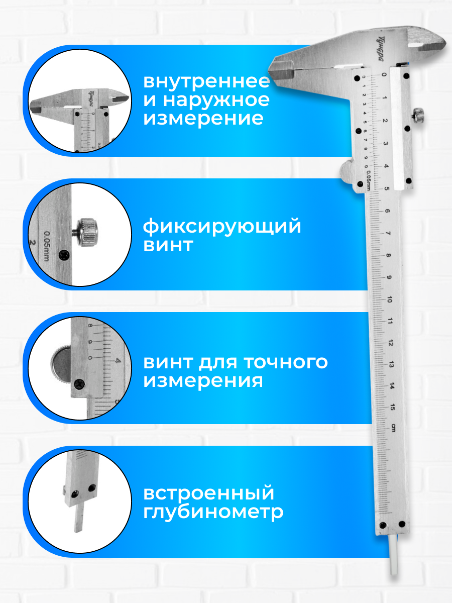 Отзывы на Штангенциркуль тундра, металлический, с глубиномером, цена деления 0.05 мм, 150 мм