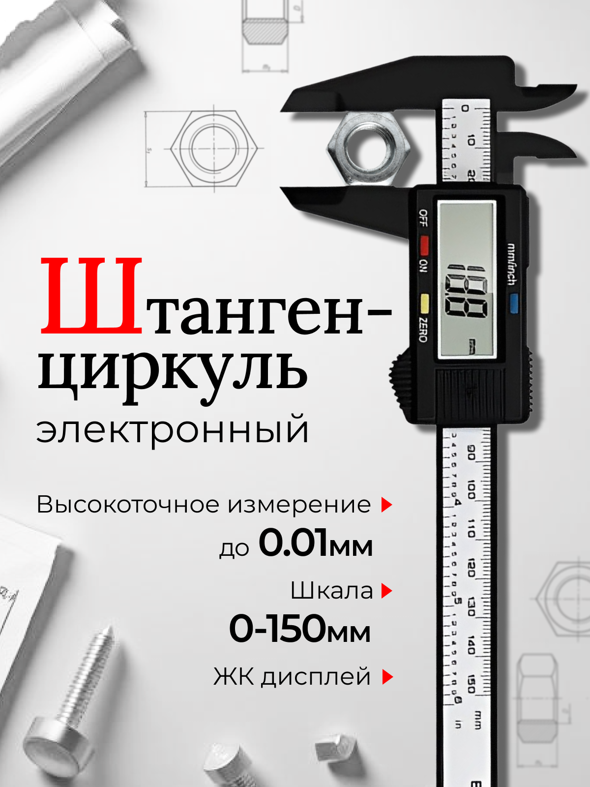 Отзывы на Штангенциркуль электронный, штангенциркуль цифровой, штангенциркуль 150 мм, измерительный, с глубиномером и линейкой, кейс, черный