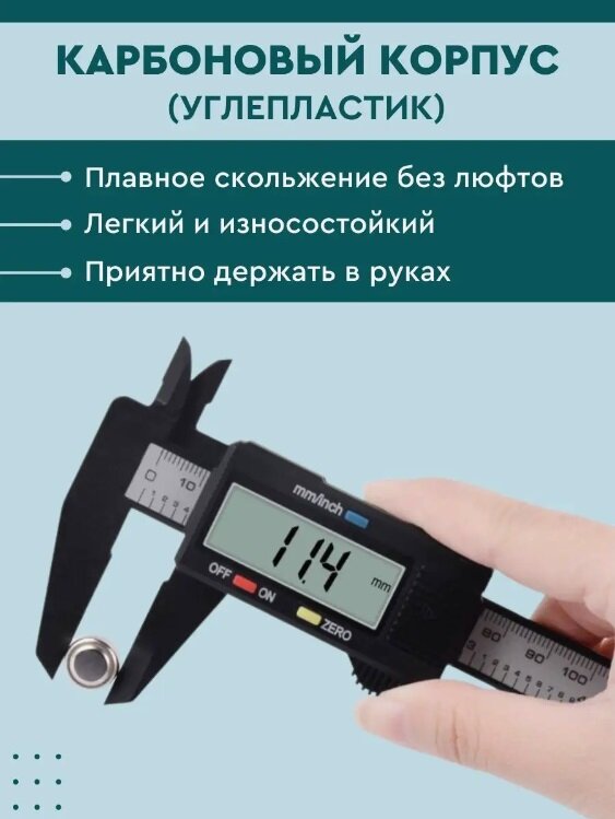 Отзывы на Штангенциркуль цифровой в кейсе с жк дисплеем из углеводородного волокна 0-150 мм, шаг 0.1 мм, глубиномер + батарейка LR44.