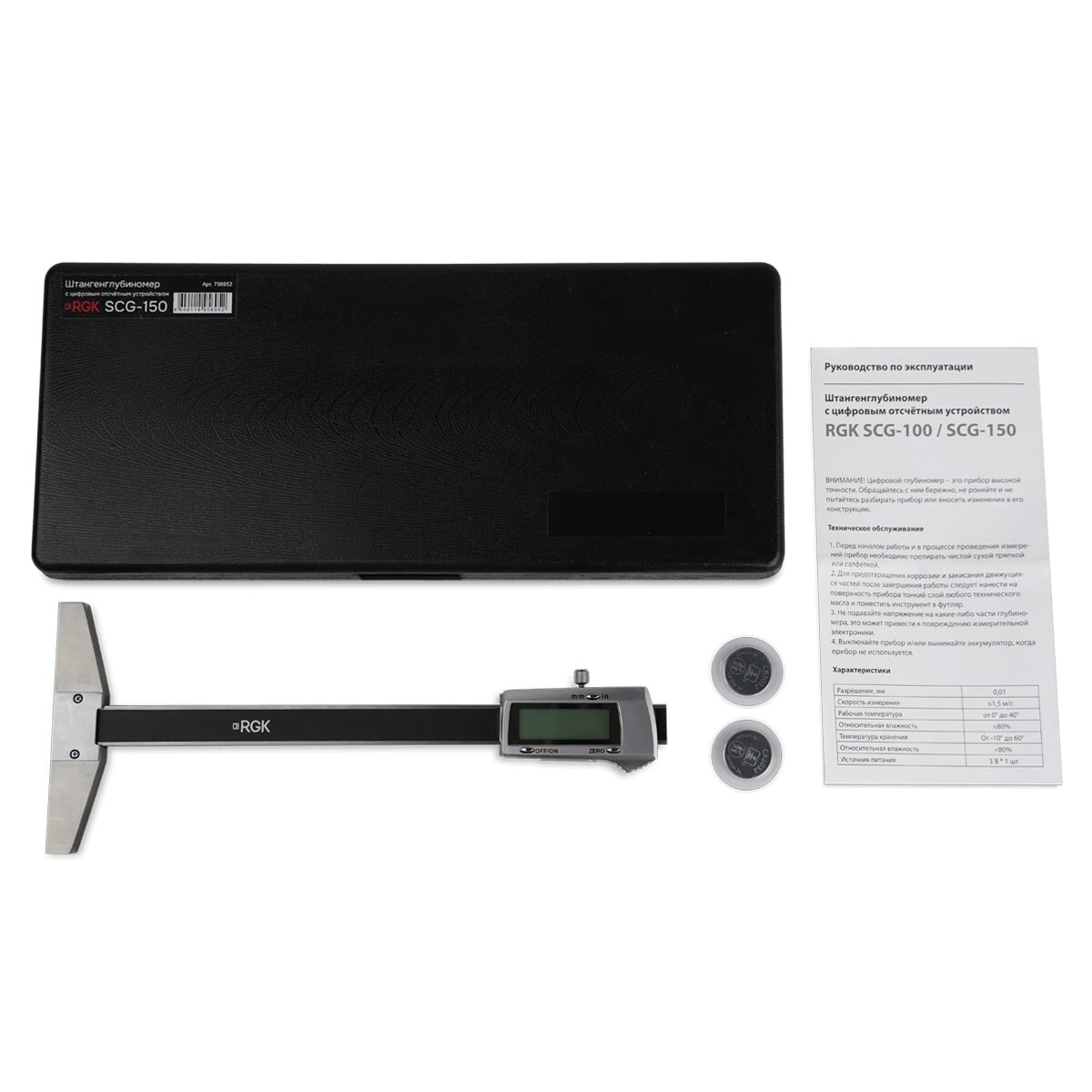 Штангенглубиномер с цифровым отсчётным устройством RGK SCG-150, 0 - 150 мм (арт. 756952) информация: