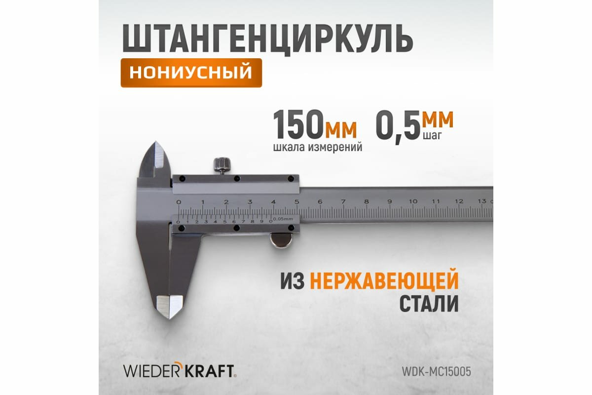 Штангенциркуль WIEDERKRAFT нониусный, 150 мм, 0.05 мм, тип I, ГОСТ 166-89, со сборной рамкой WDK-MC15005 информация: