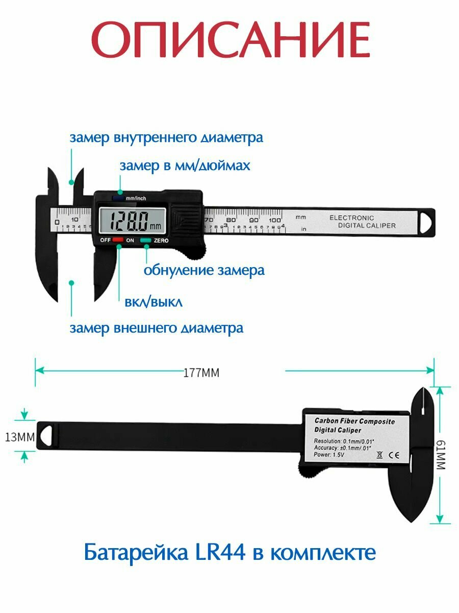 Штангенциркуль электронный / Батарейка LR44 в комплекте информация: