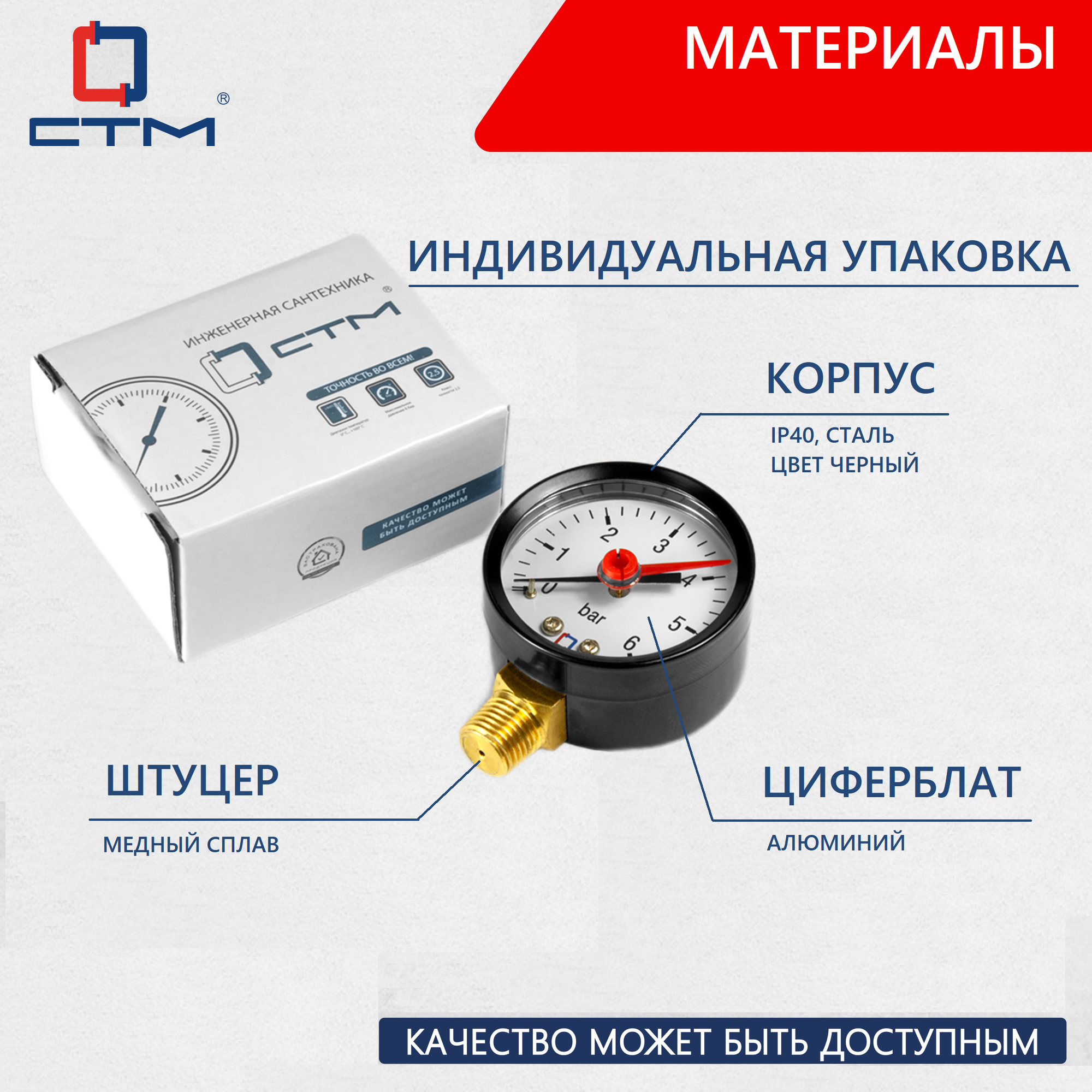 Манометр радиального подключения 1/4", измерение до 6 бар СТМ информация: