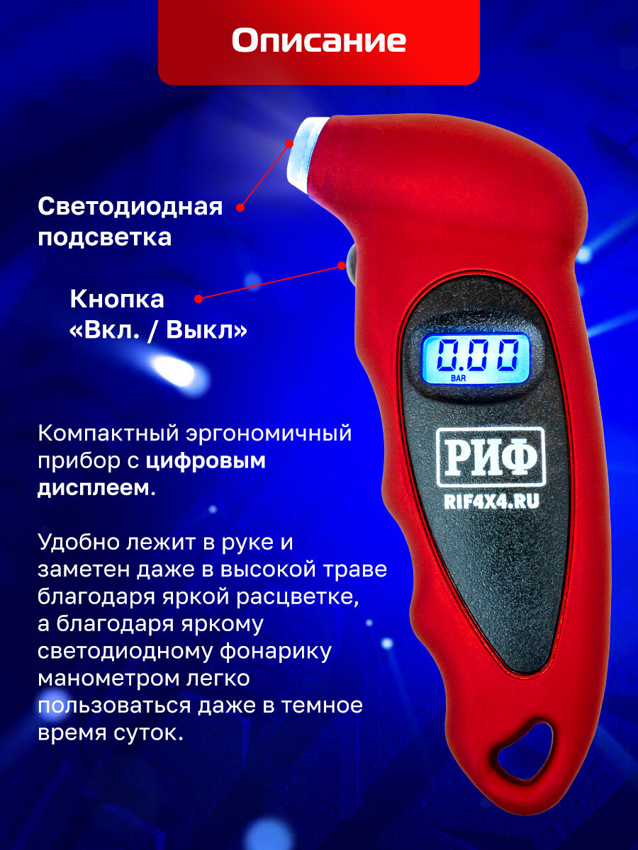 10 цен на Манометр РИФ RIF-HB-D1, цифровой, автомобильный, 4 единицы измерения