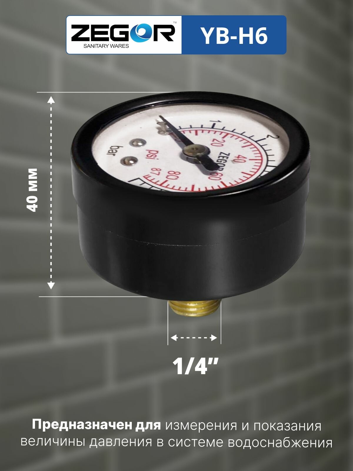 Отзывы на Манометр аксиальный НР 1/4, 40 мм, 6 бар ZEGOR (кл. точности 1,6)