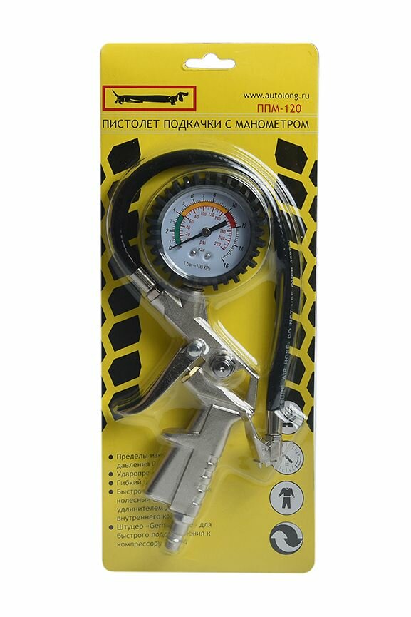 Манометр с пистолетом подкачки шин и шлангом (16 атм) Автолонг информация: