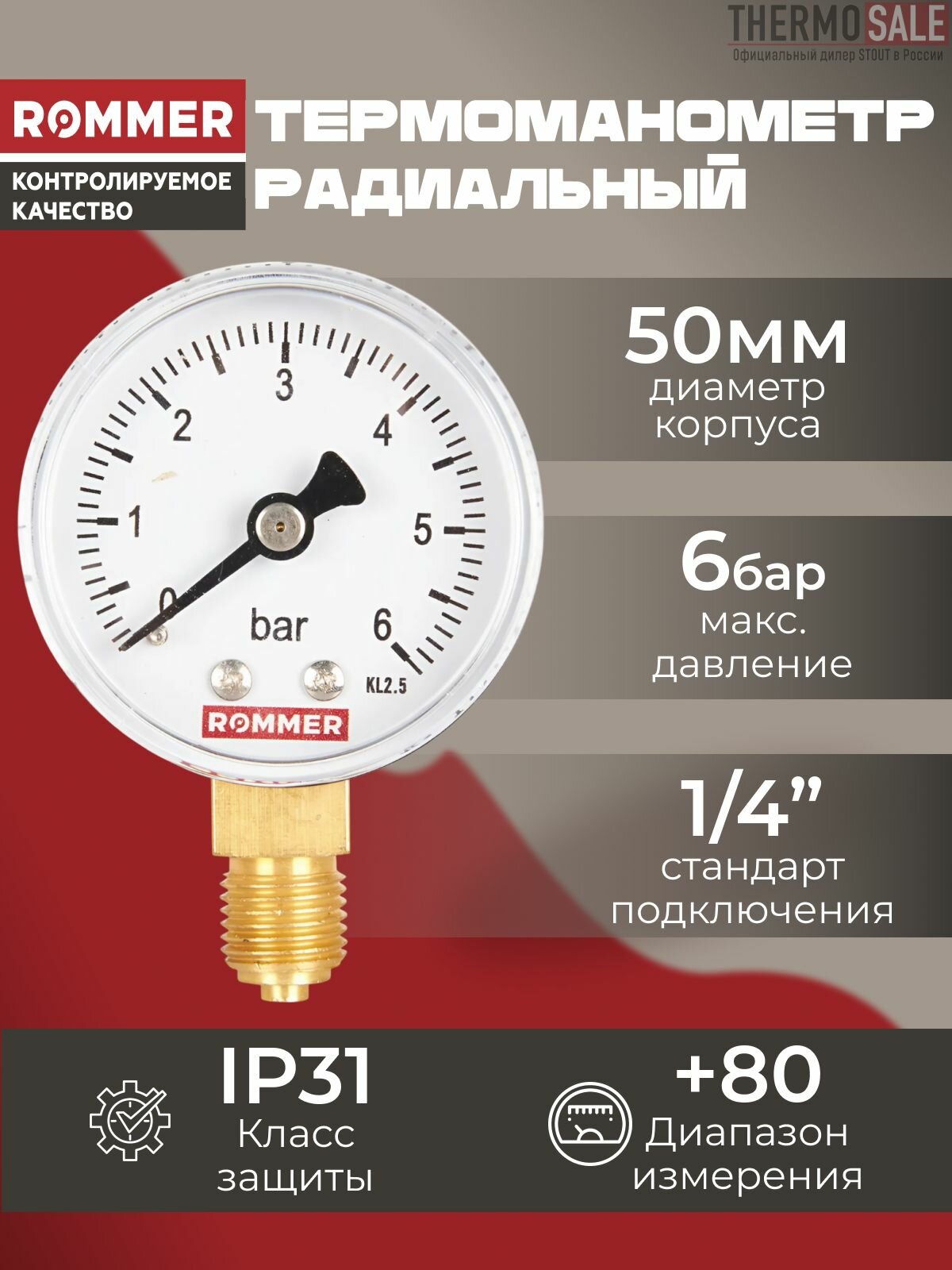 Манометр для водоснабжения 1/4 радиальный Dn 50 мм, 0-6 бар информация: