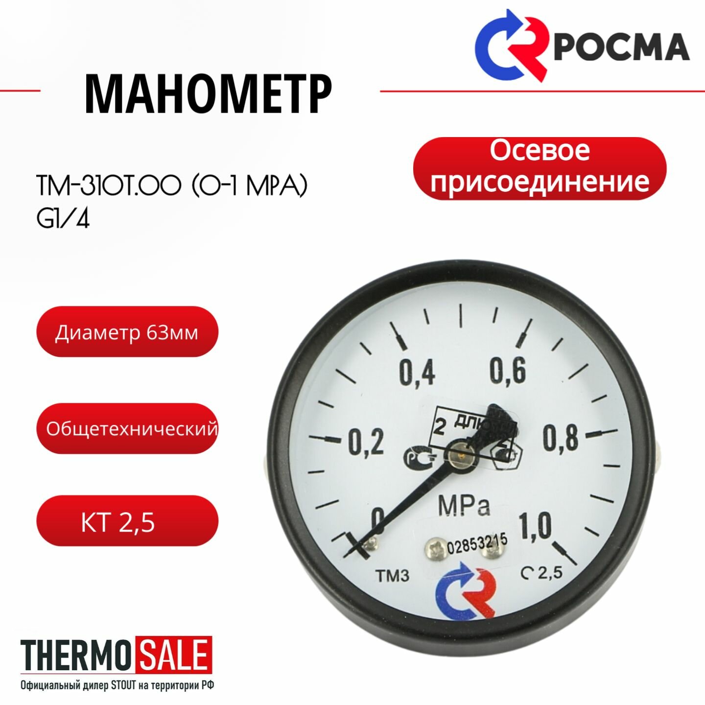 Отзывы на ТМ-310Т.00 (0-1 MPa) G1/4 манометр 63мм, общетехнический, осевое присоединение. КТ 2,5 росма 00000008922