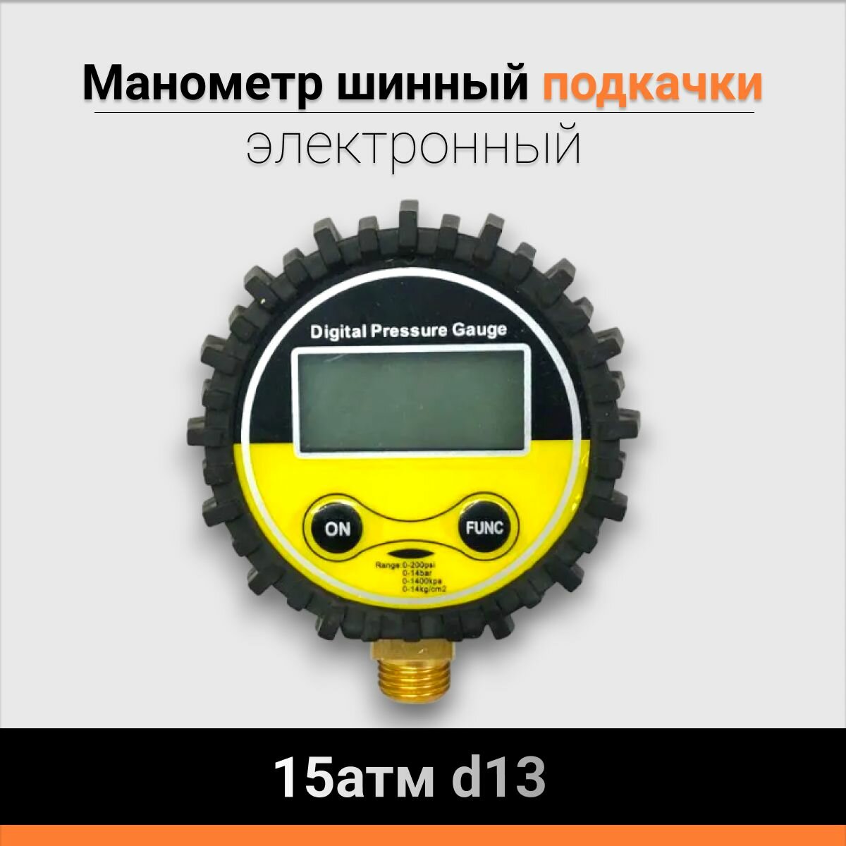 Манометр автомобильный для шин, для пистолета подкачки электронный 15атм d13, измеритель давления пневмоинструмента информация:
