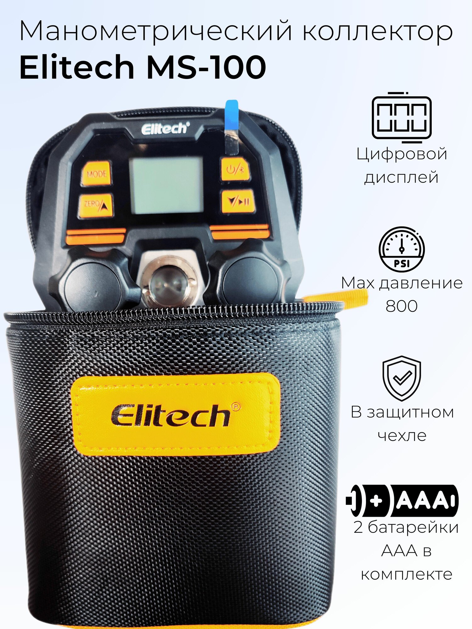 Манометрический коллектор Elitech MS-100, цифровой, подсветка дисплея информация: