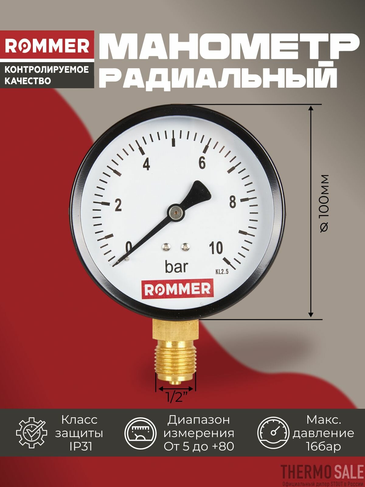 Отзывы на Манометр для водоснабжения 1/4 радиальный корпус Dn 100 мм 0-16 бар, кл.2.5