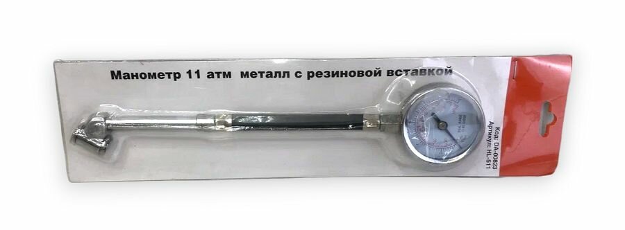 Манометр автмобильный для шин, грузовой, аналоговый, 11 атмосфер, с шлангом и металлическим удлинителем информация: