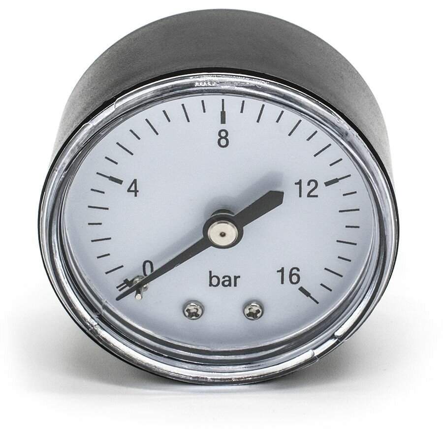 Манометр радиальный 0-16 бар для фильтра воды с угловым фитингом и трубкой 1/4" на магистраль 3/8"