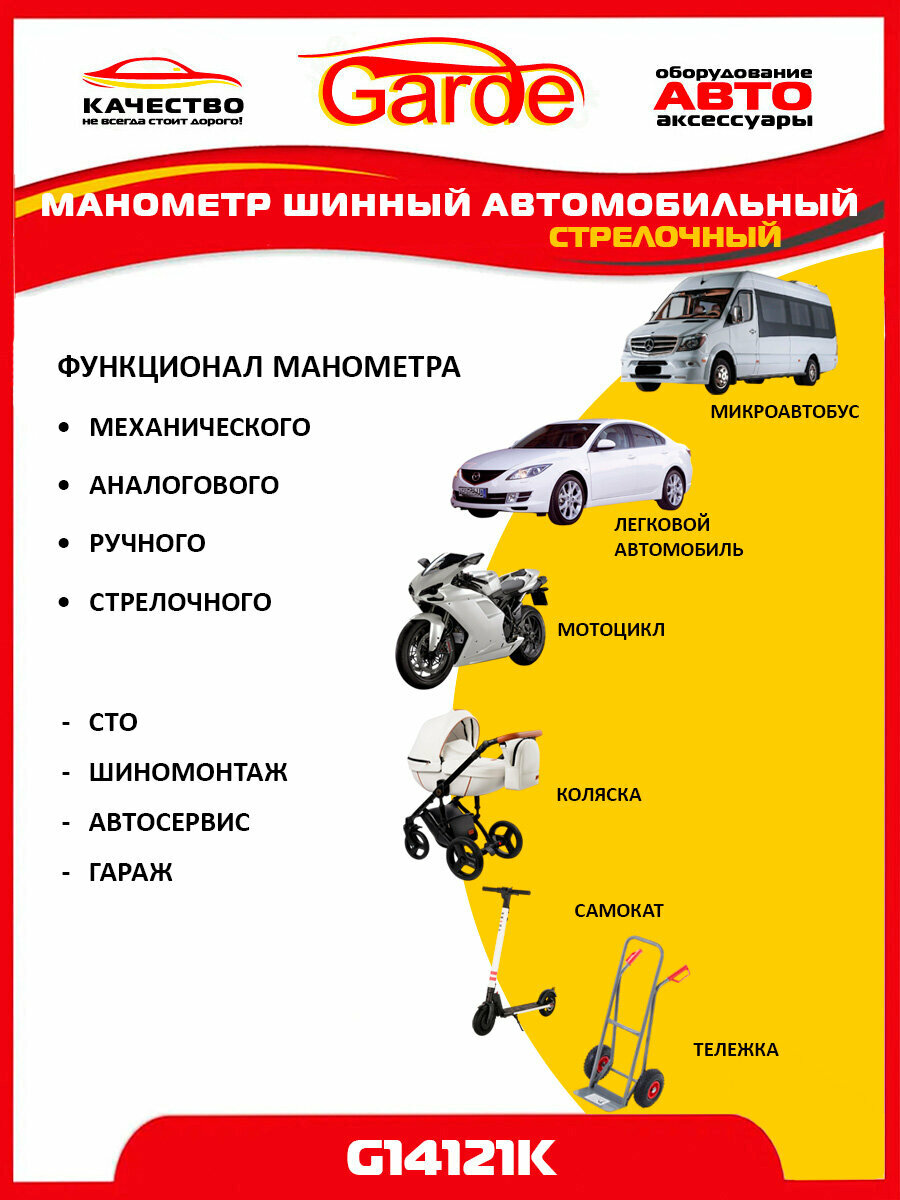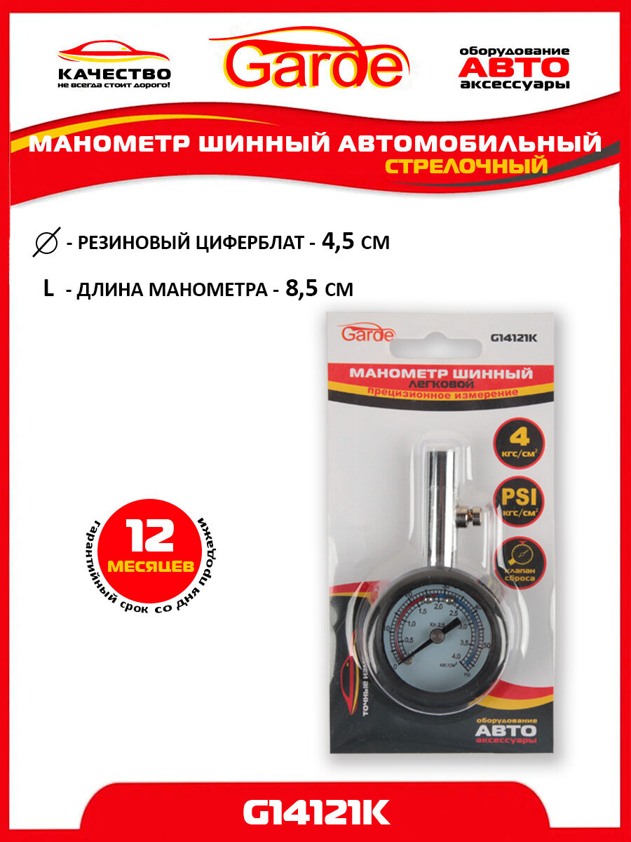 Манометр 4 атм автомобильный для шин аналоговый легковой с клапаном сброса, Garde, G14121K, 24348 информация: