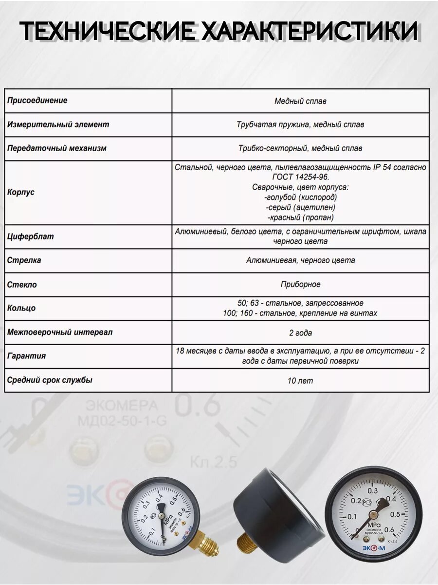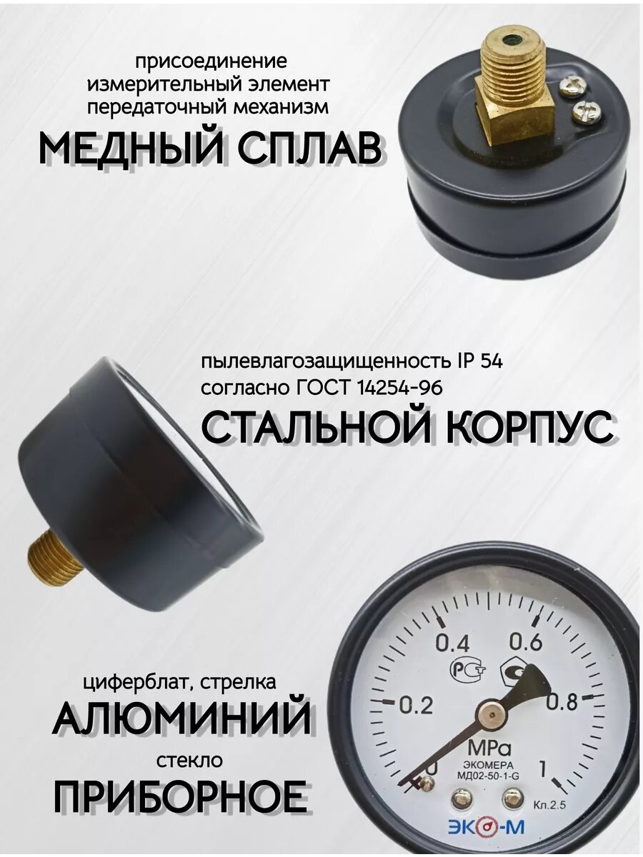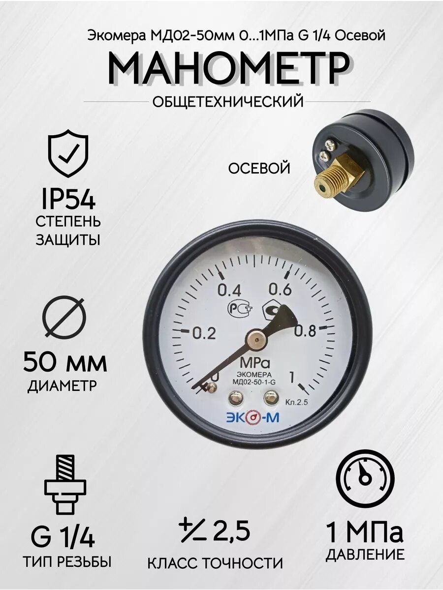 Манометр Экомера МД02-50мм 0.1МПа G1\4 Осевой информация: