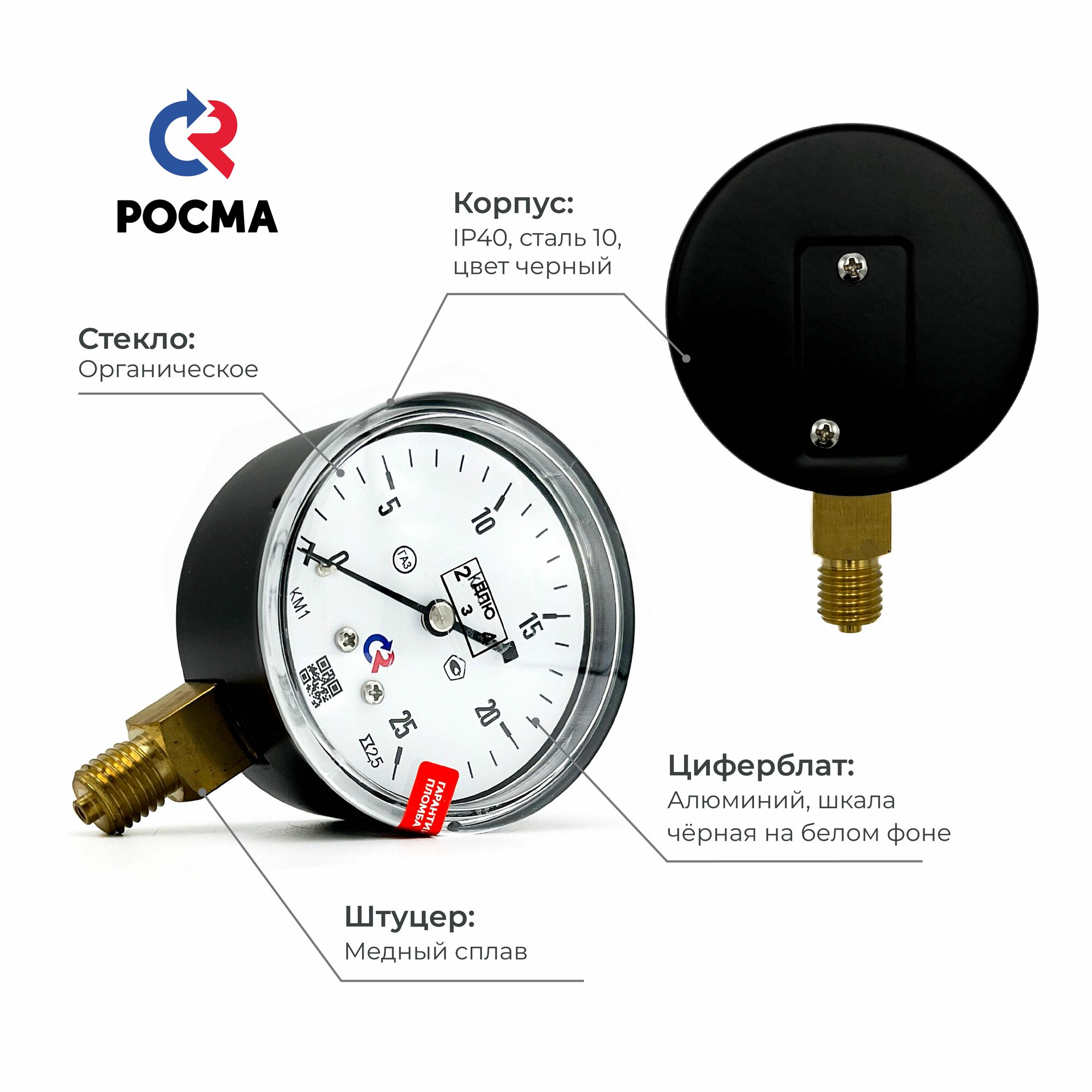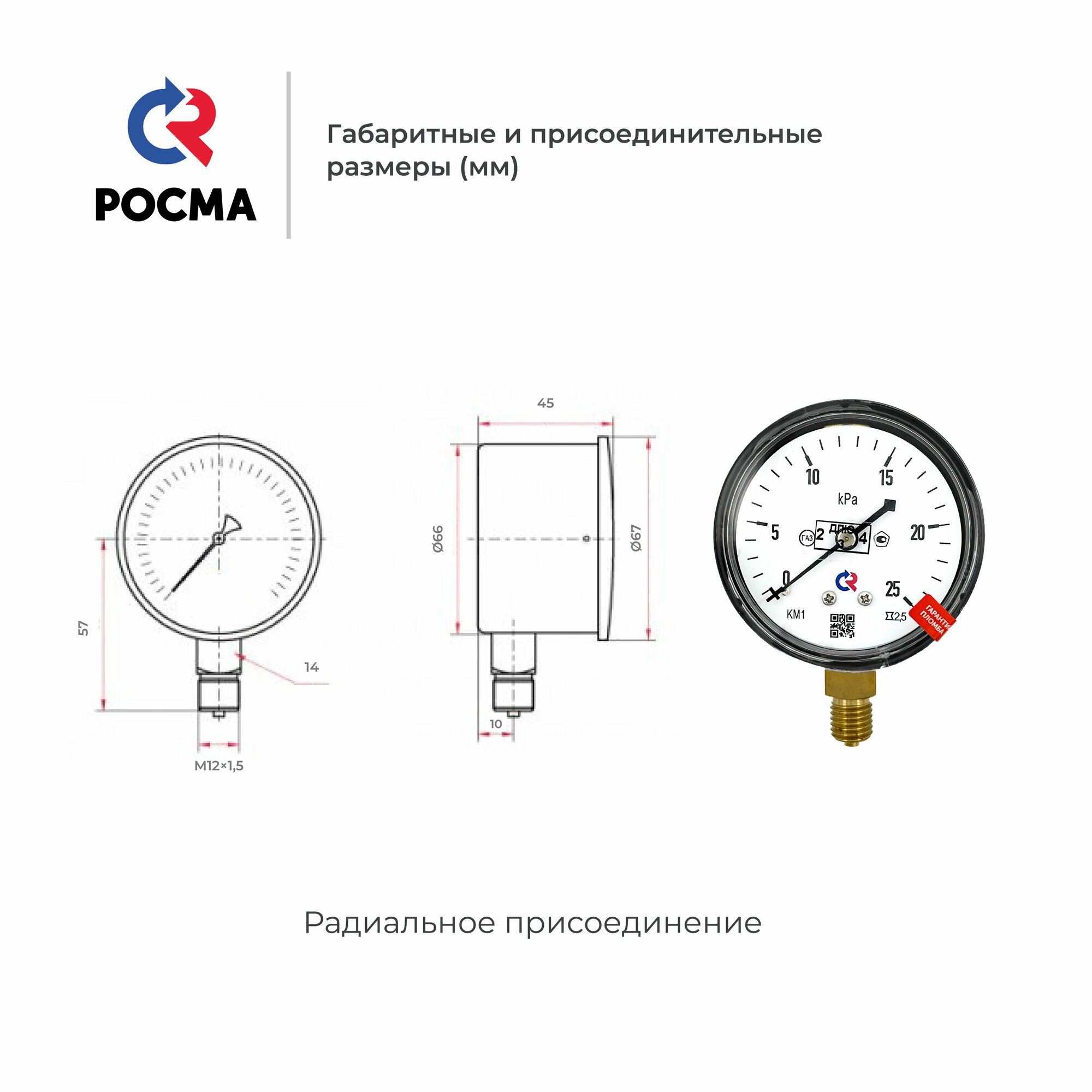 Напоромер КМ-11 Росма давление от 0 до 25 кПа, резьба М12х1,5, класс точности 2,5, диаметр корпуса 63 мм, поверка на 2 года информация: