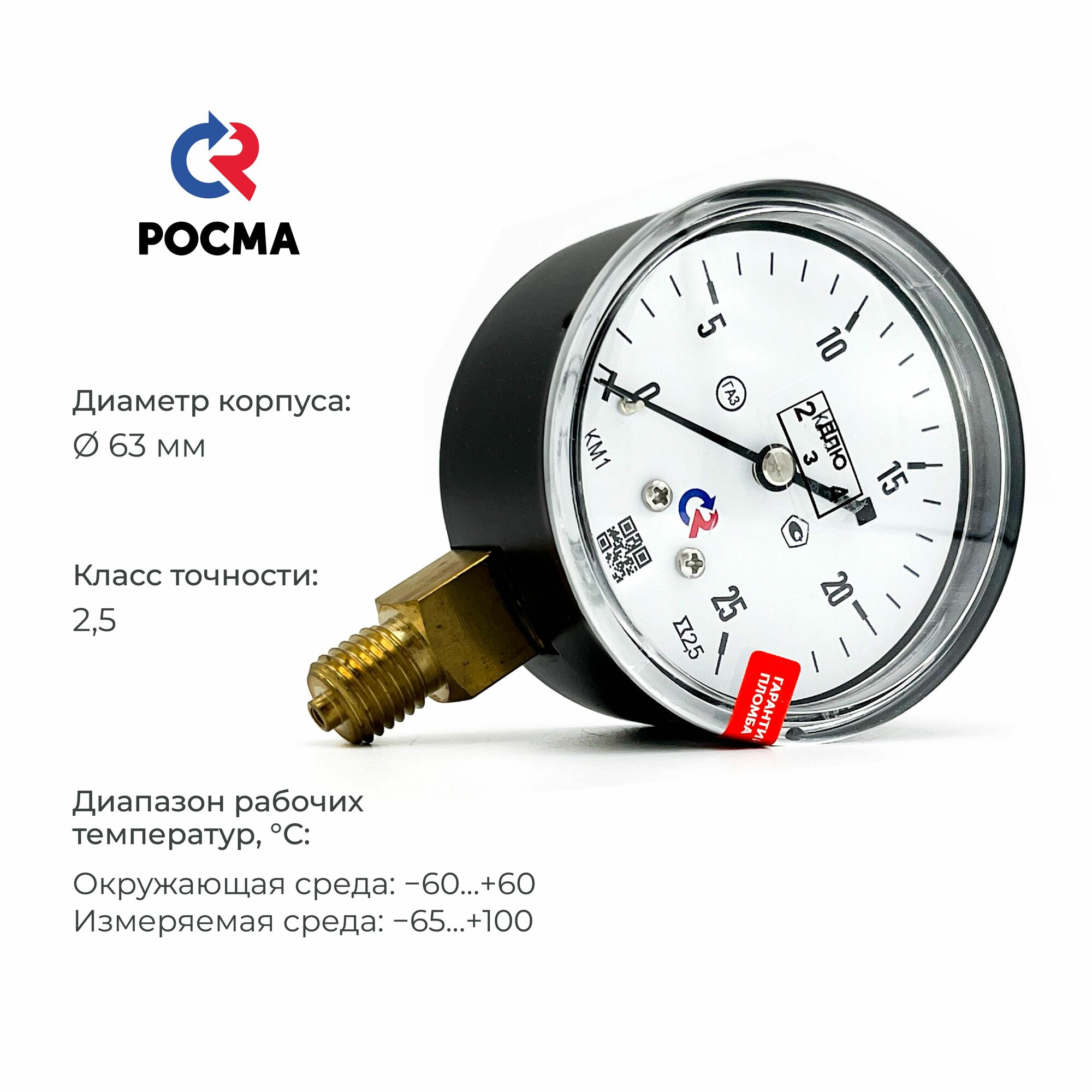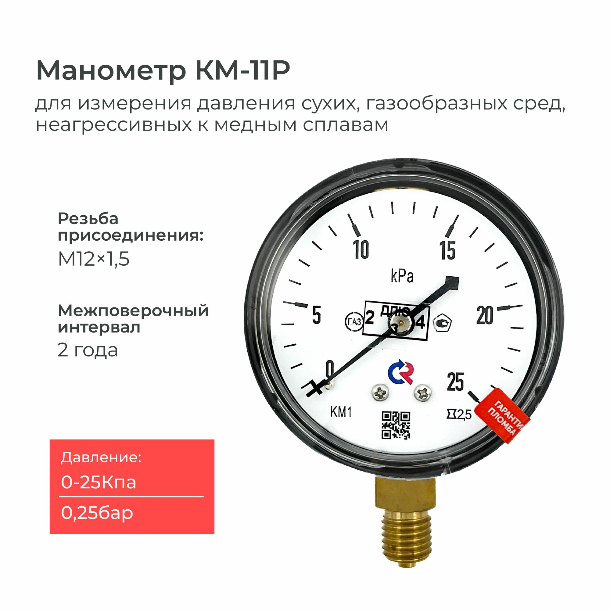 10 цен на Напоромер КМ-11 Росма давление от 0 до 25 кПа, резьба М12х1,5, класс точности 2,5, диаметр корпуса 63 мм, поверка на 2 года