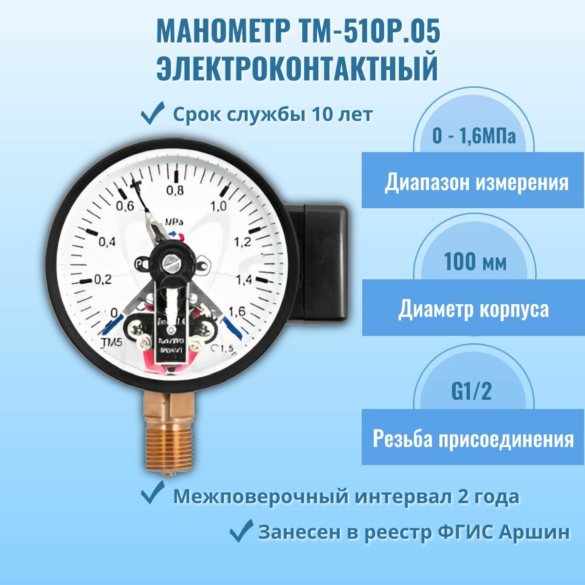 10 цен на Манометр электроконтактный "росма" ТМ-510Р.05 0-1,6МПа G1/2, кл. т.1,5