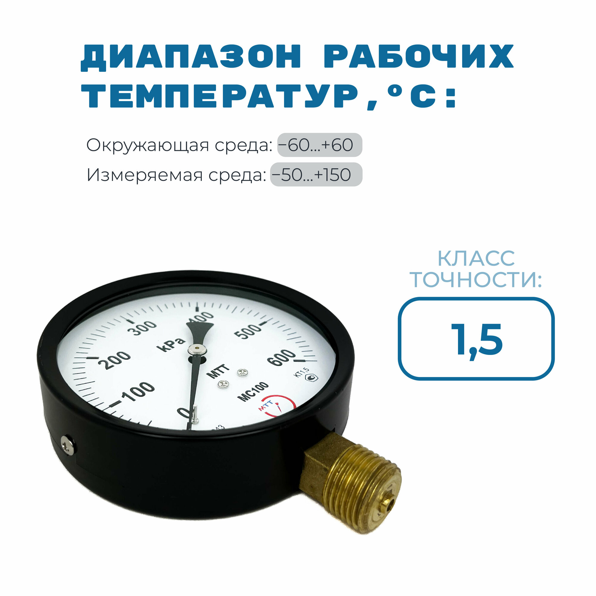 Отзывы на Манометр технический МС100 давление 0-600 кПа (6 бар) резьба BSP1/2 класс точности 1,5 корпус 100 мм. поверка 2 года