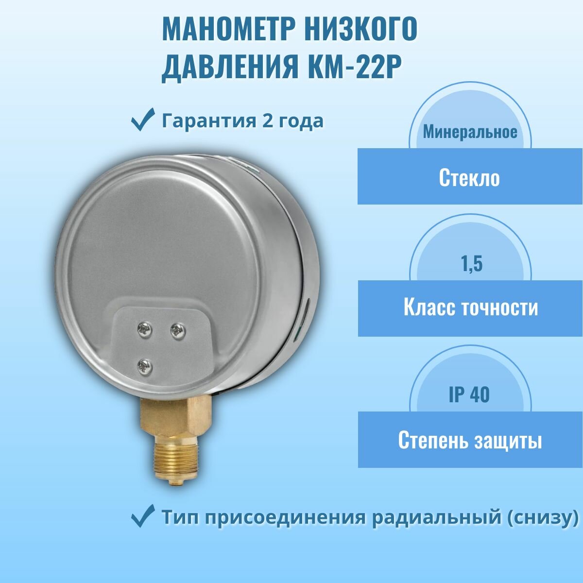Манометр низкого давления (напоромер) "росма" КМ-22P 0-6кПа G1/2, кл. т. 1,5 информация: