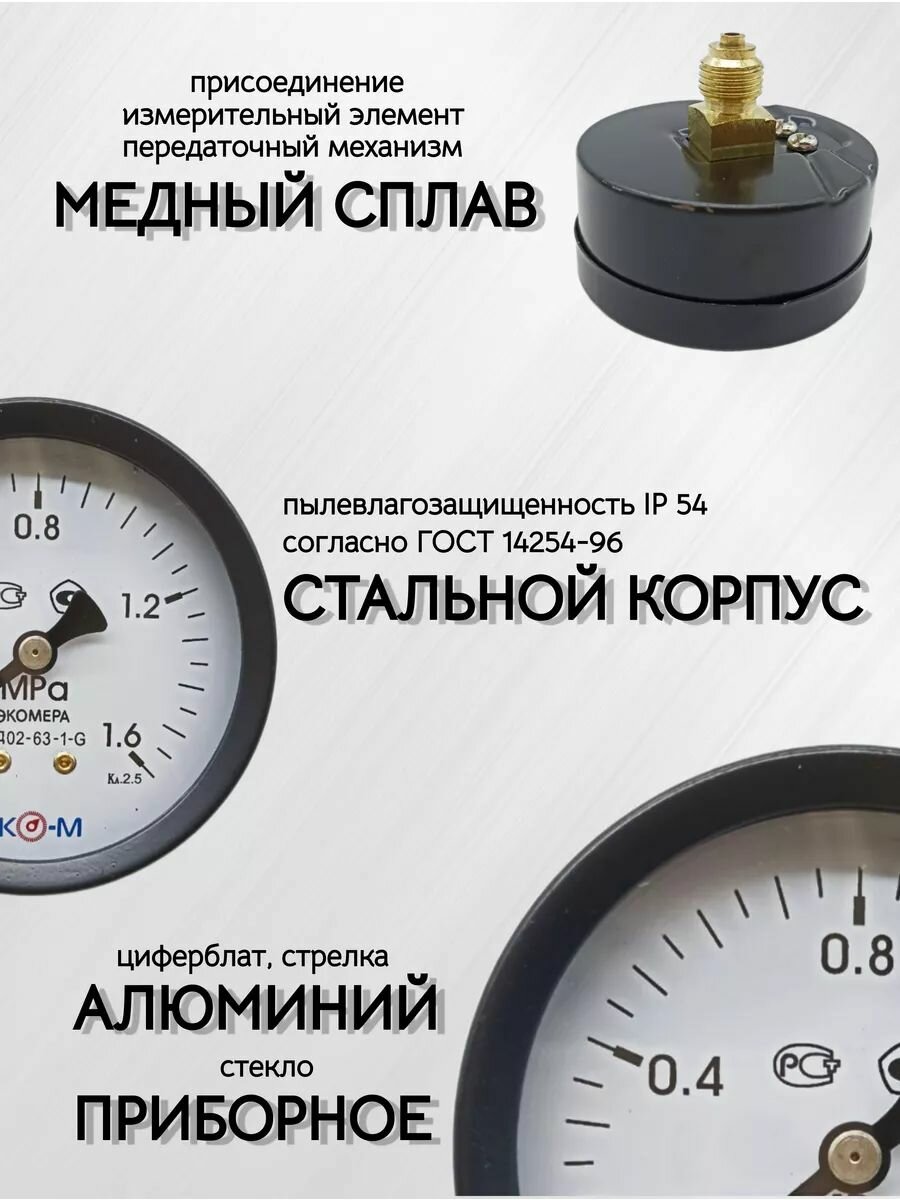 10 цен на Манометр Экомера МД02-63мм 0.1,6МПа G1/4 Осевой