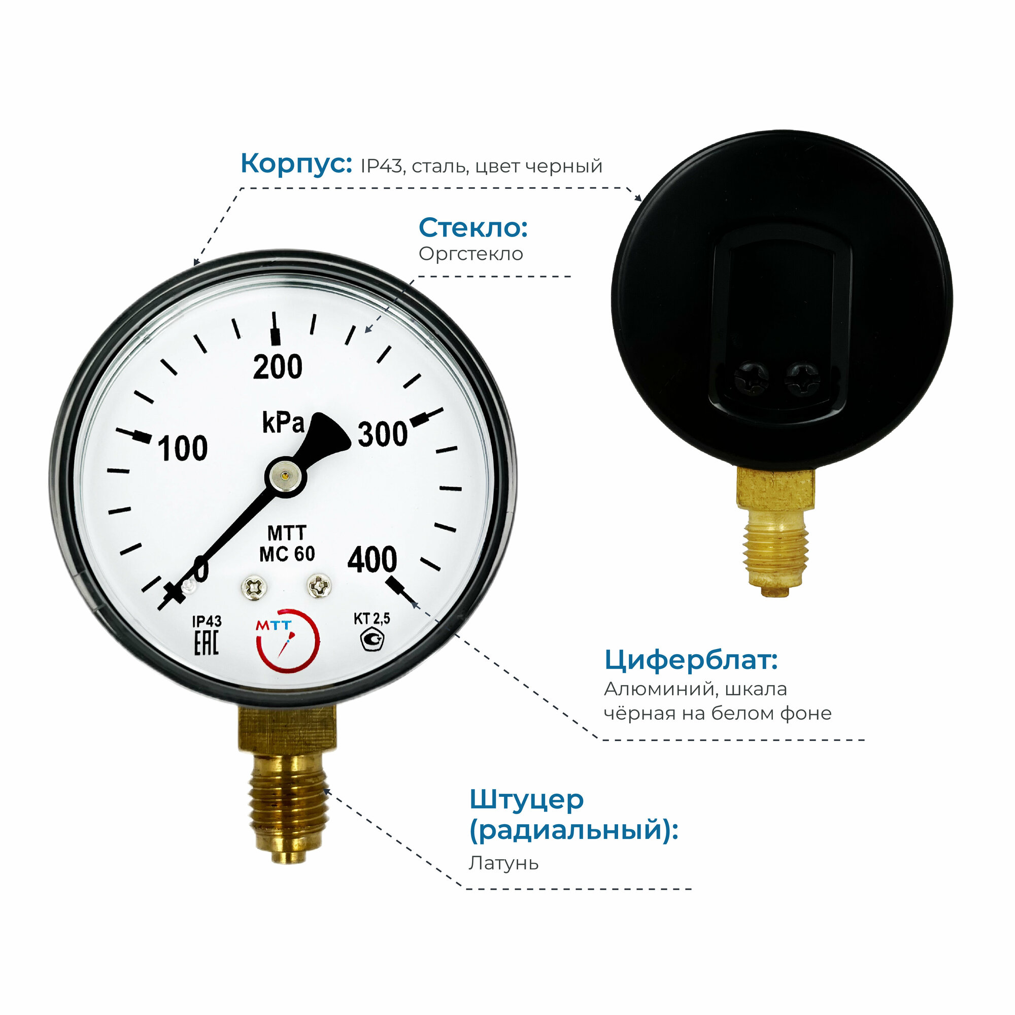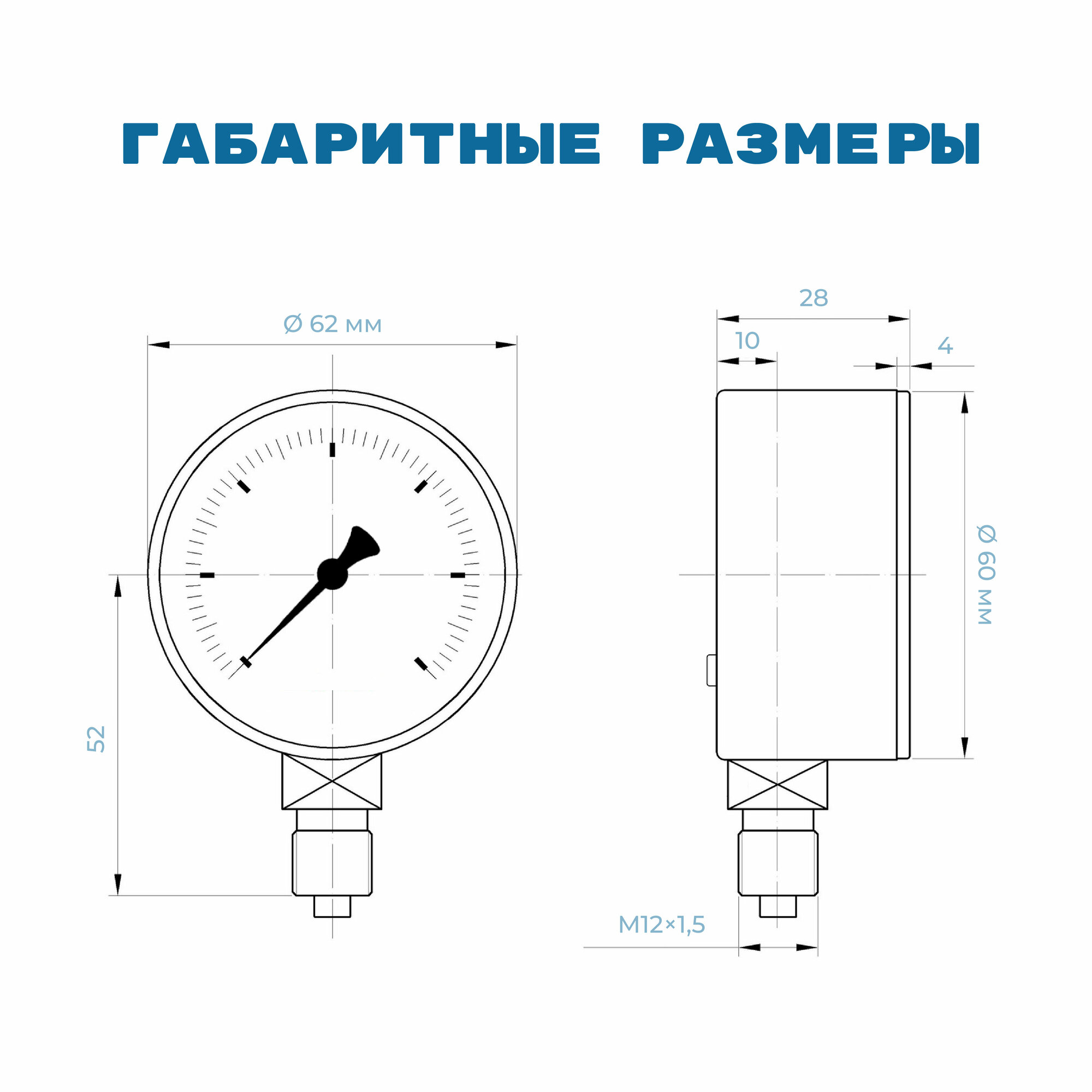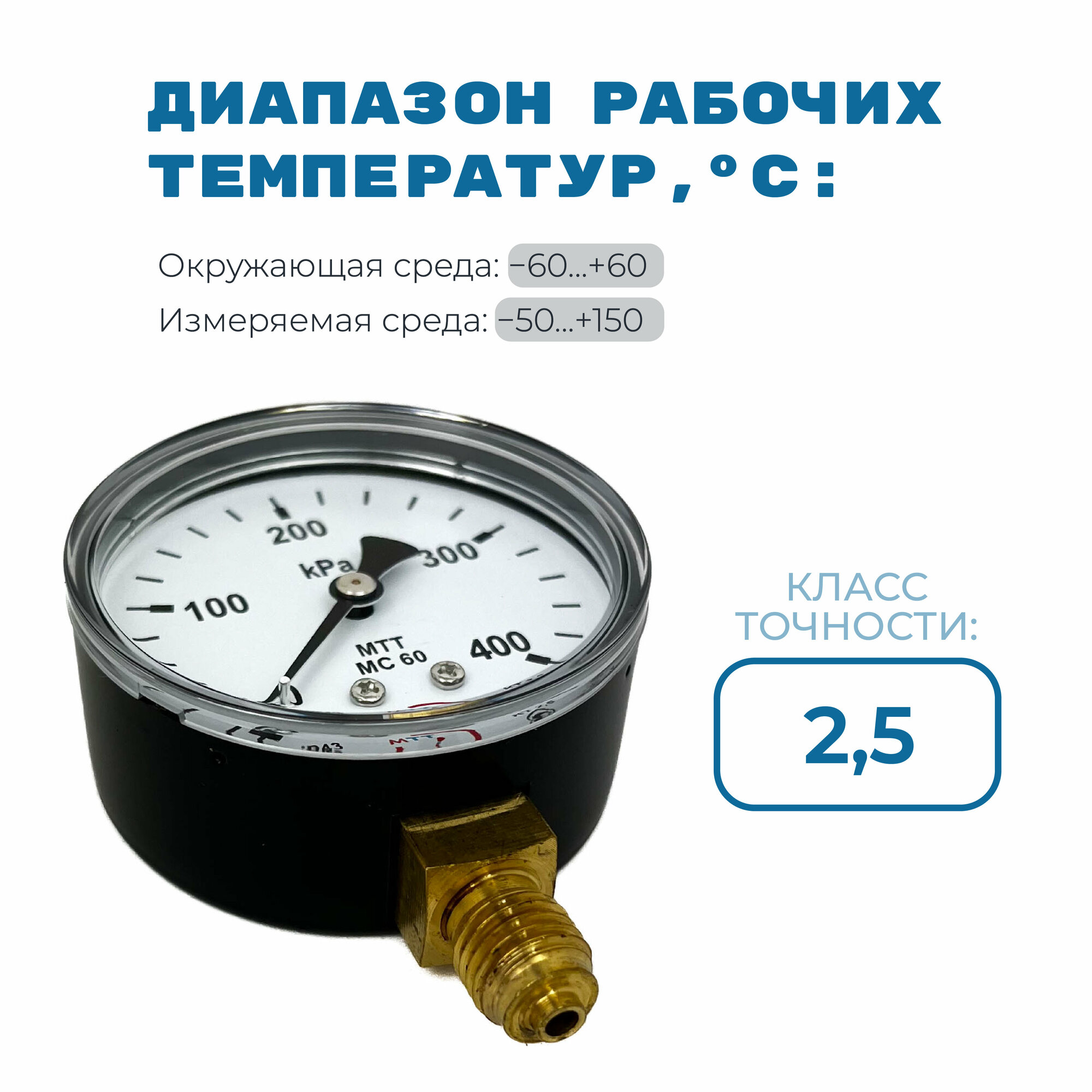 Манометр МС60 давление 0-400 кПа (4 бар) резьба М12х1.5 класс точности 2,5 корпус 62 мм. поверка 2 года информация:
