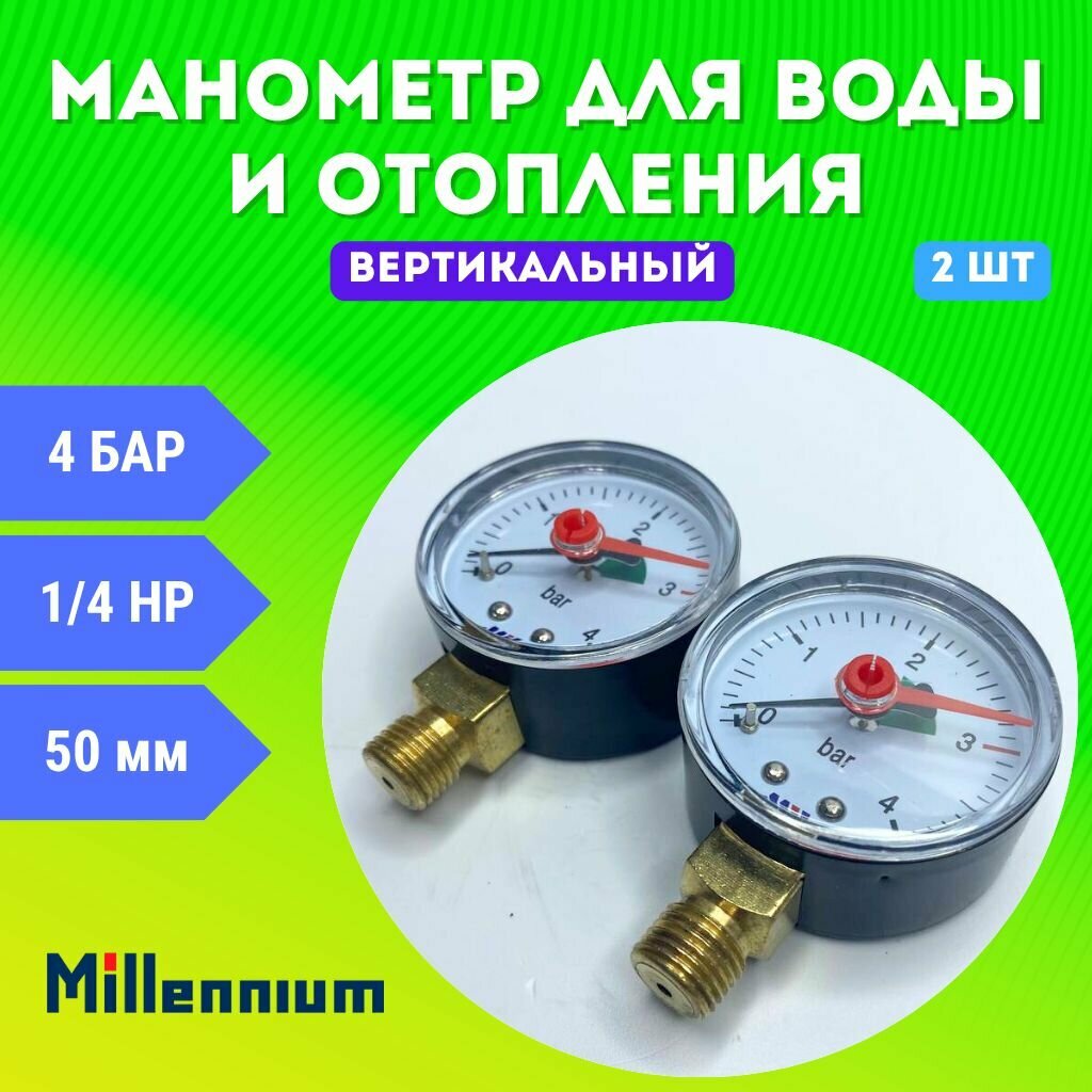 10 цен на Манометр для воды и отопления 4 бар 1/4 НР Millennium 2 шт