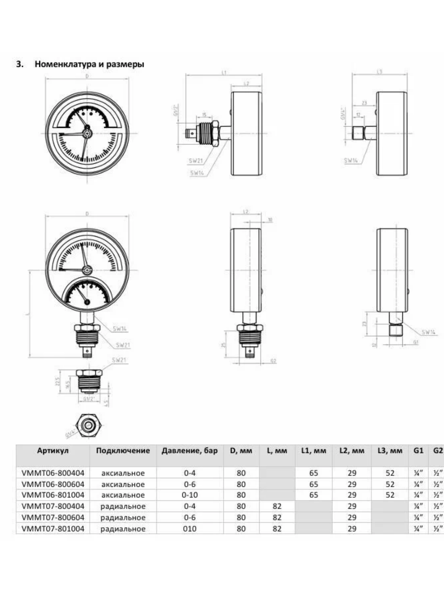 10 цен на Термоманометр радиальный Varmega VMMT07-801004, диаметр 80 мм, 10 бар, 120°С, 1/2", с запорным клапаном