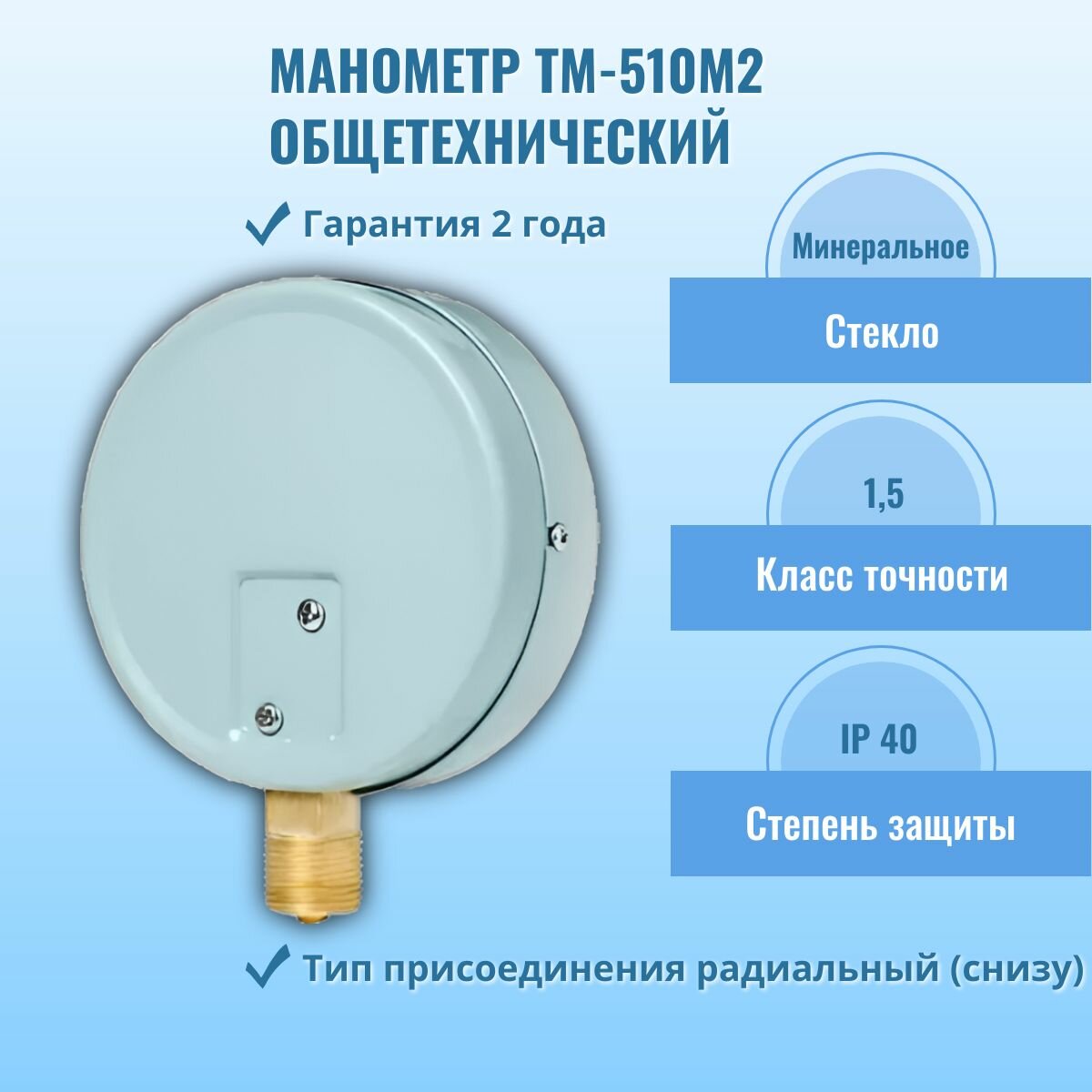 Манометр "росма" ТМ-510Р.00 М2 0-6кгс/см2 М20х1,5, кл. т. 1,5 информация: