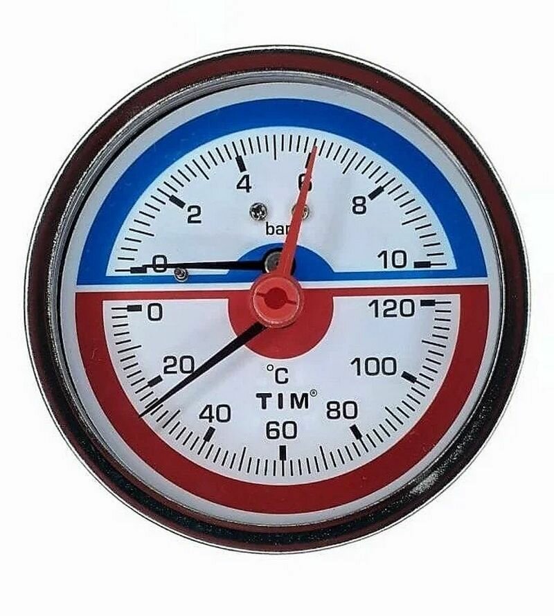 10 цен на Термоманометр аксиальный 1/2" - 6 бар, 0 - 120 гр. TIM Y-80T-6