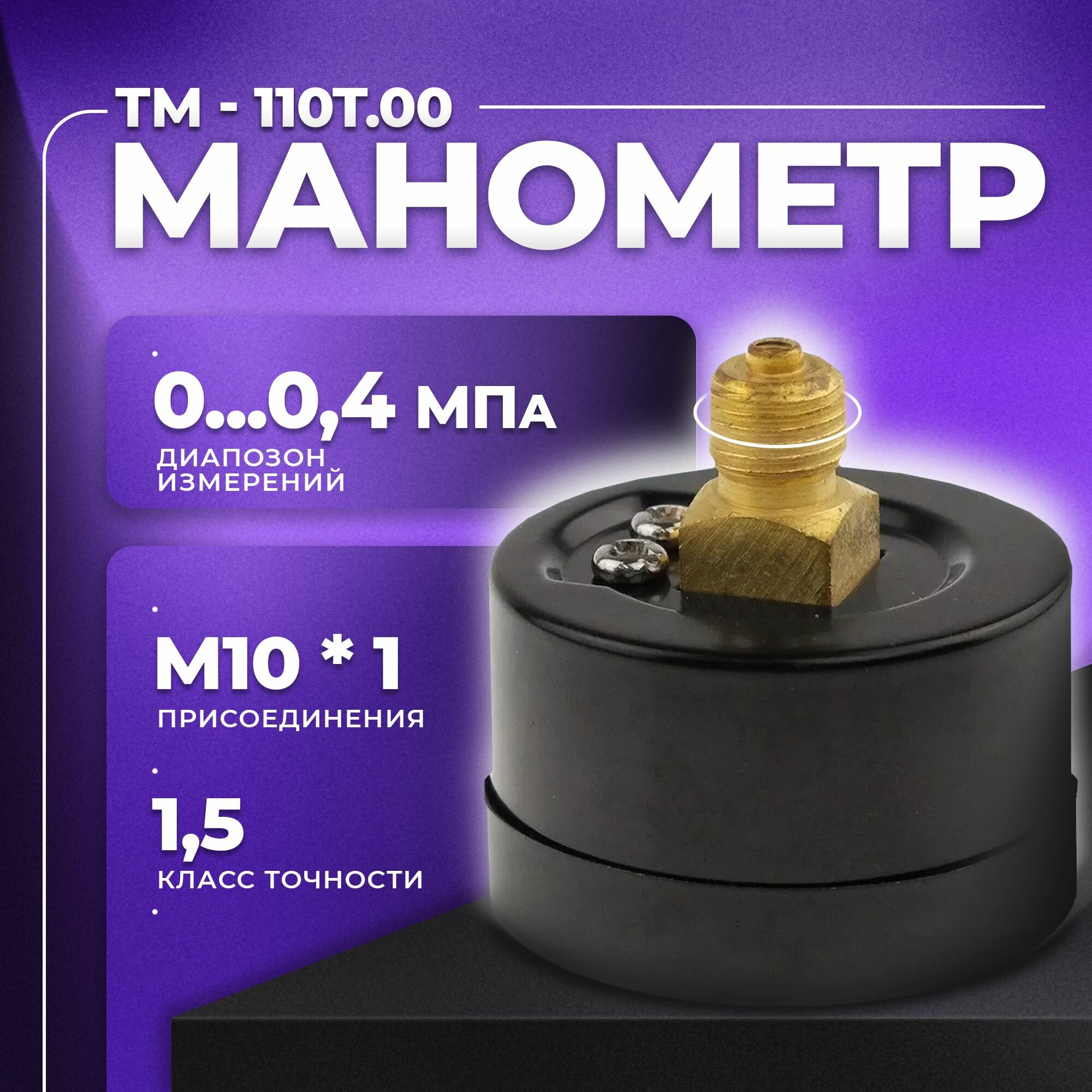 Манометр ТМ-110Т.00 (0.0,4 МПа) М10х1: класс точности-2,5 росма информация: