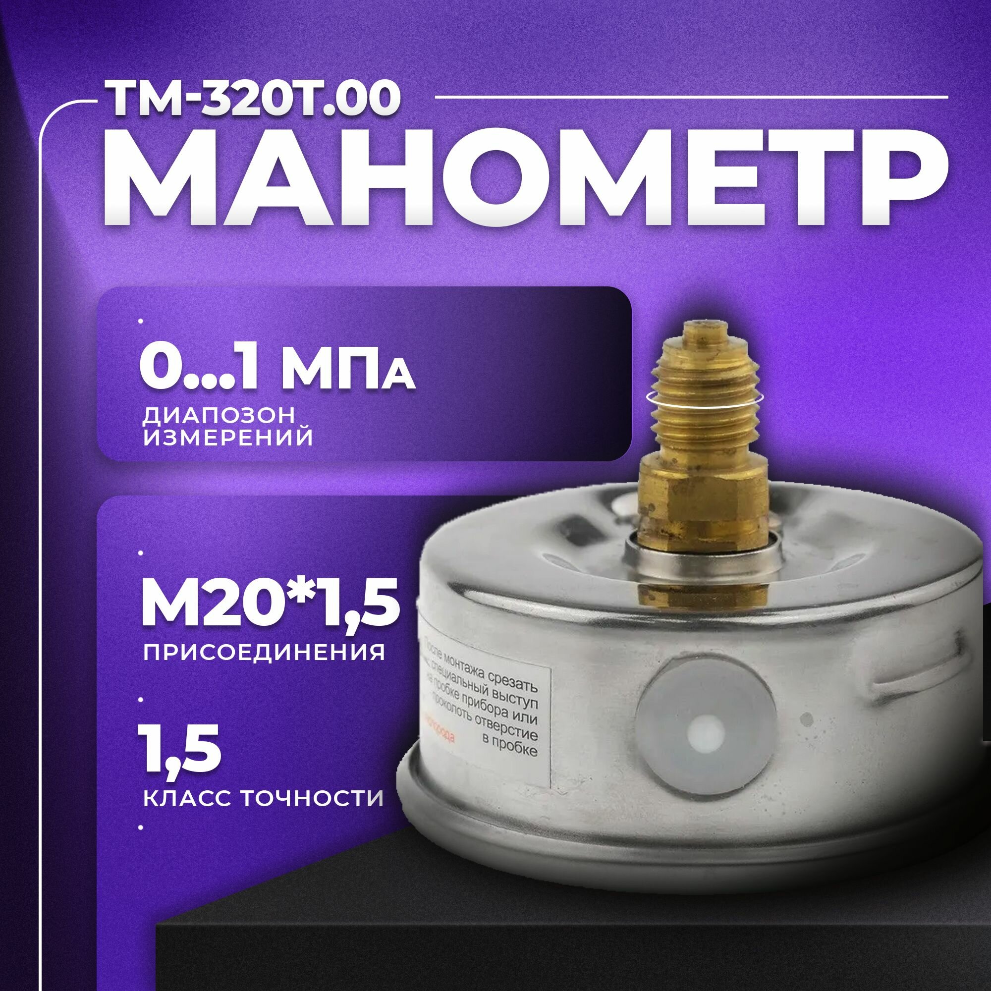 Манометр ТМ-320T.00 (0.1,0 МРа) М12х1,5. класс точности -1,5 (с глицерином) росма информация: