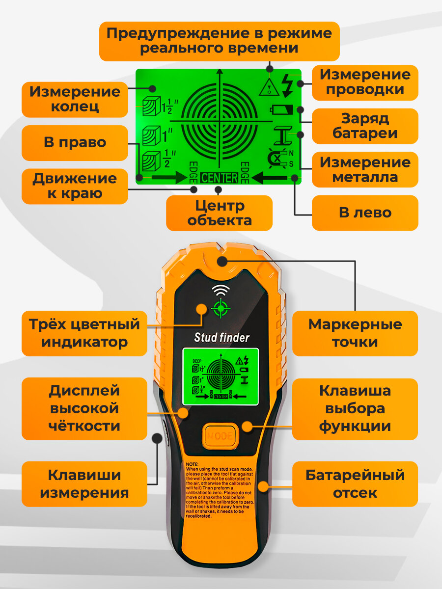 TH(610)-UE (Z62227ED) - индикатор-детектор проводки и металла 3 в 1, поиск-индикатор кабеля в стене. Автоматическая калибровка