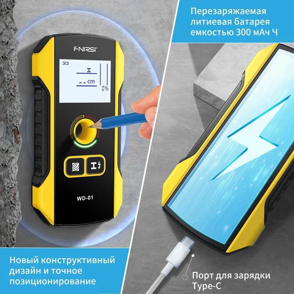 Детектор скрытой проводки и металлов / Портативный цифровой индикатор проводки / Трассоискатель, FNIRSI информация: